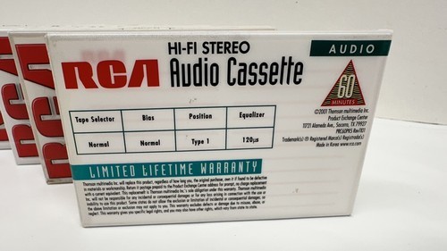 This lot of 5 vintage audio cassettes from RCA is perfect for those who want to enjoy their favorite music or record their own audio. The cassettes have a capacity of 60 minutes and feature normal bias for high-quality sound. They are suitable for use with a variety of cassette players and recorders.