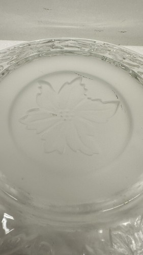 This Princess House Fantasia replacement saucer plate is a perfect addition to any collection. The round, 6-inch diameter plate features a beautiful clear/frosted design with a contemporary style and an elegant glass production technique. Handmade in America, this plate is a vintage piece with a modern twist, perfect for all occasions.