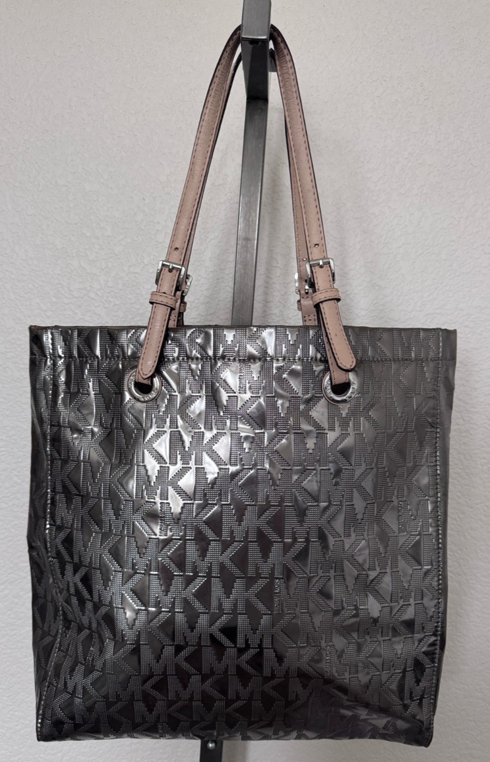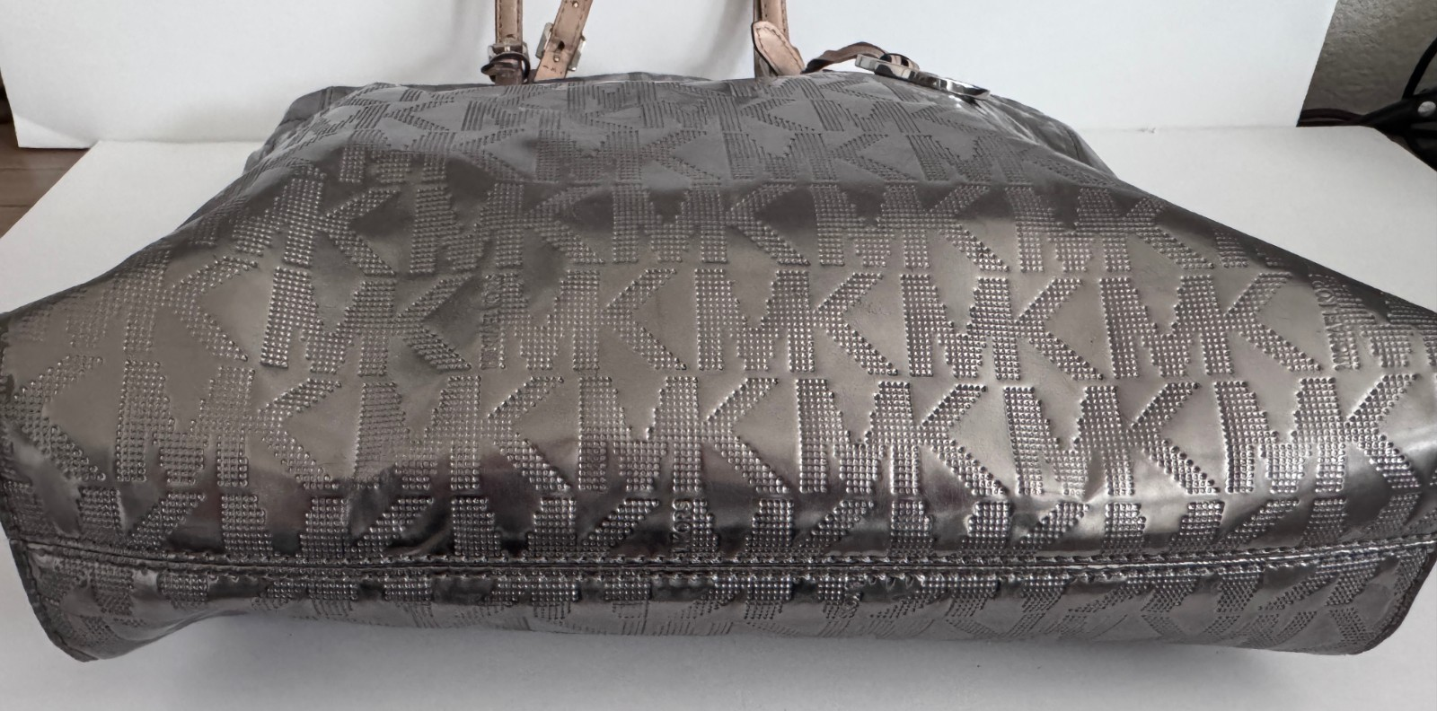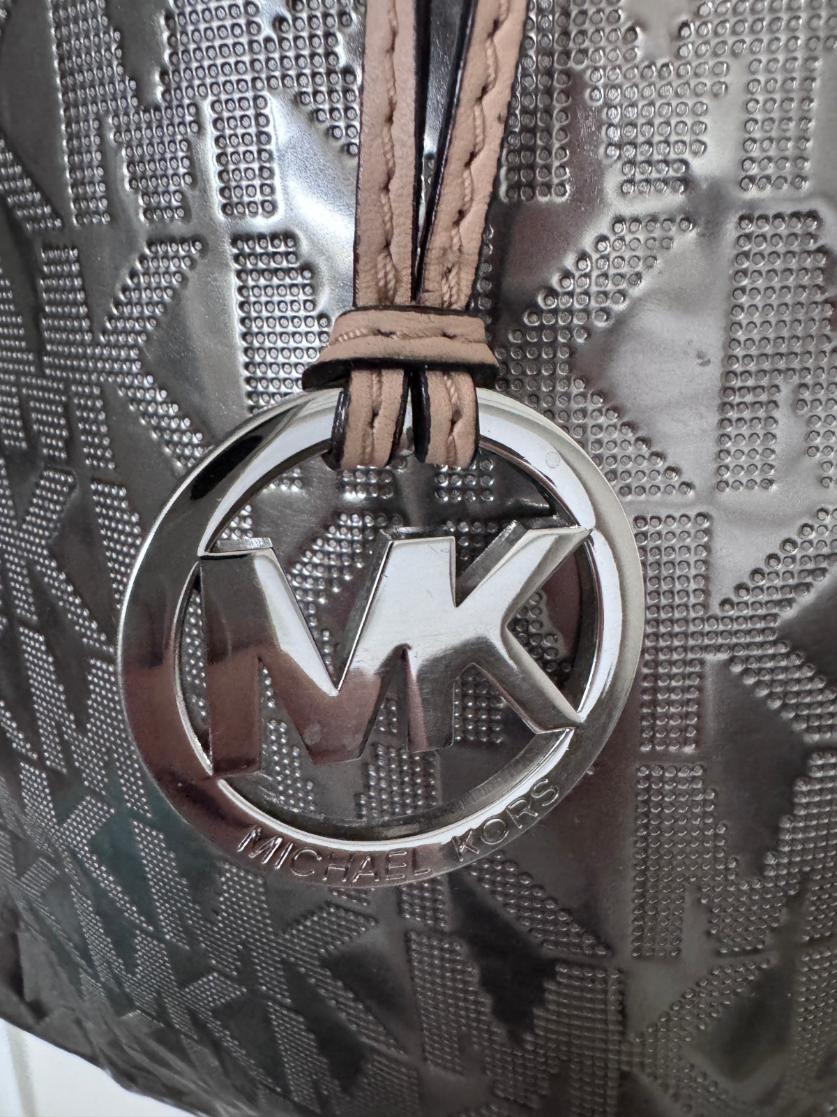 Michael Kors Signature Silver Mirror Metallic Leather Handbag Tote Bag w/Defect