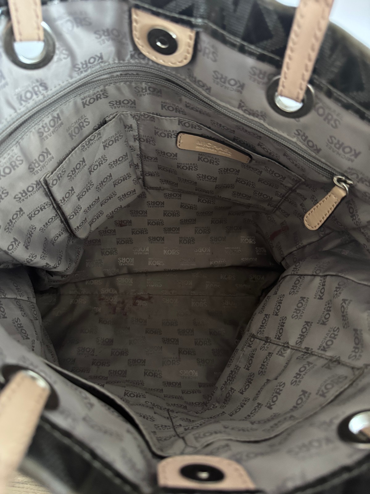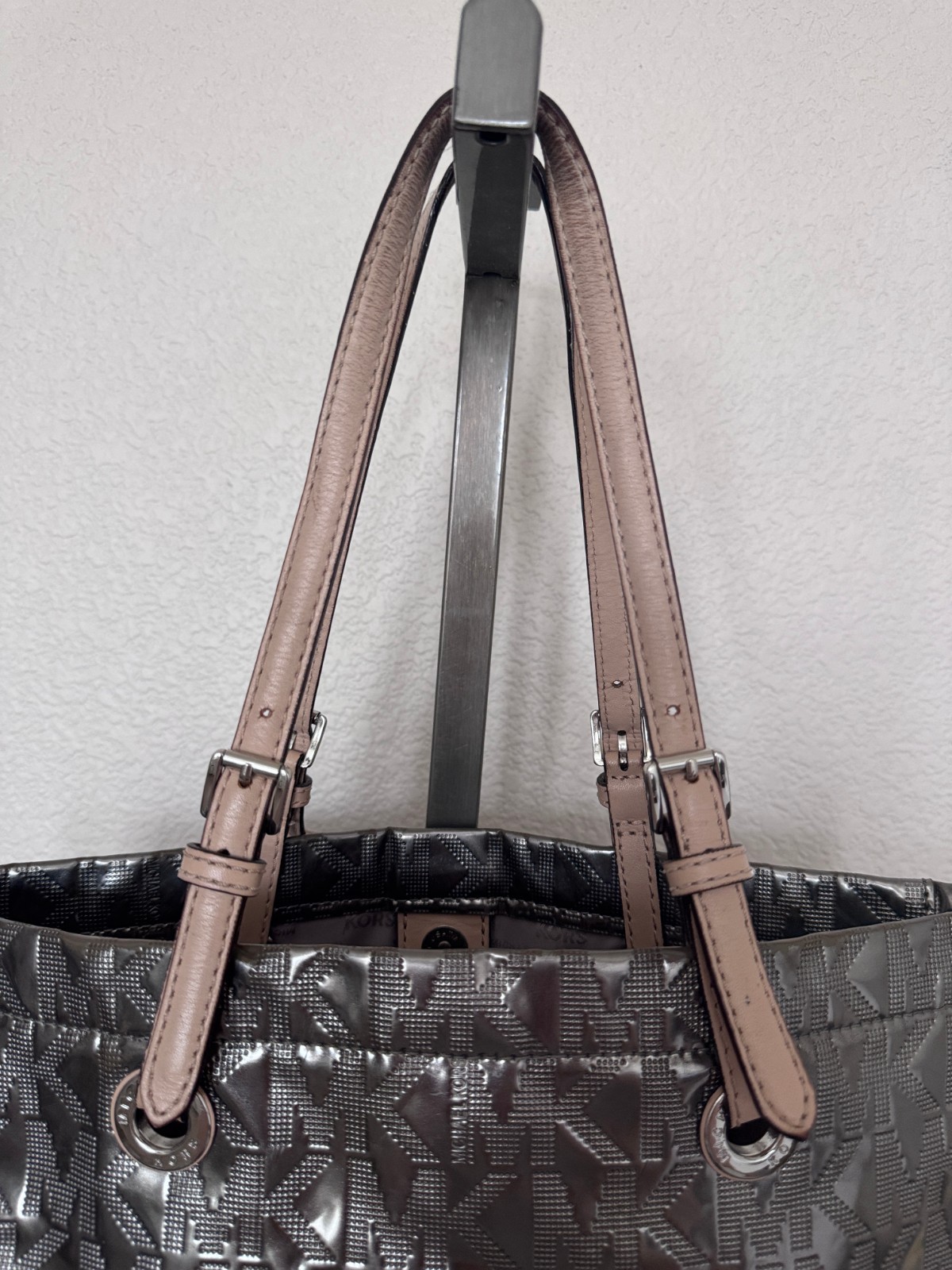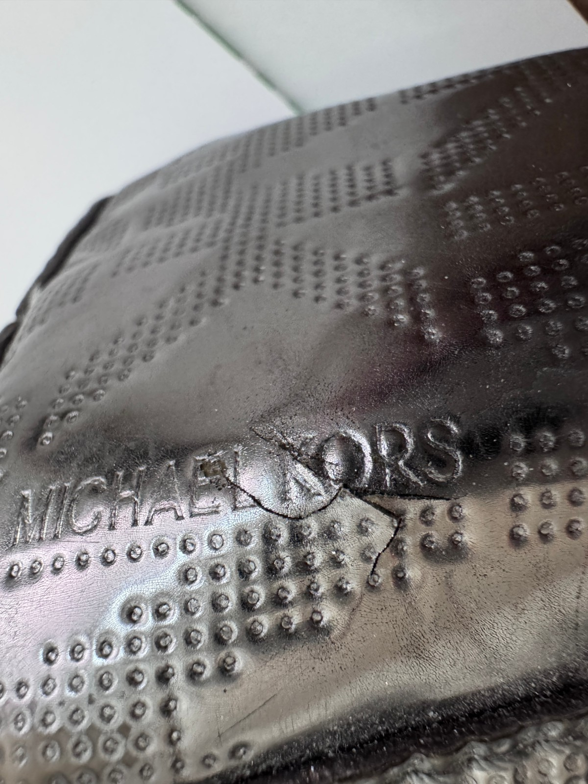 Michael Kors Signature Silver Mirror Metallic Leather Handbag Tote Bag w/Defect