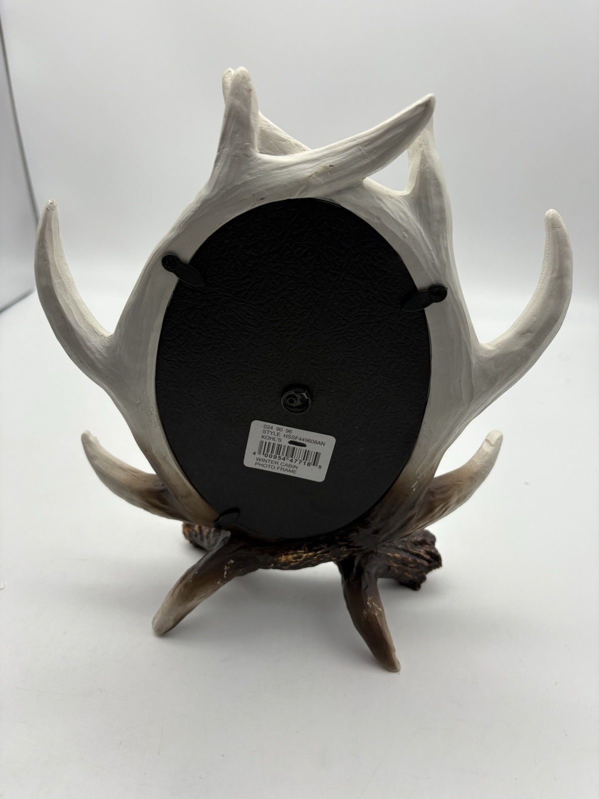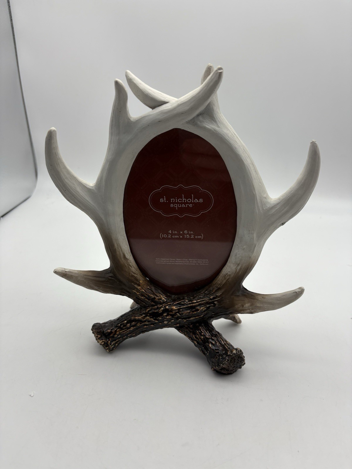 St Nicholas Square 4" x 6" Cabin Photo Frame White Brown bronze Antlers NEW