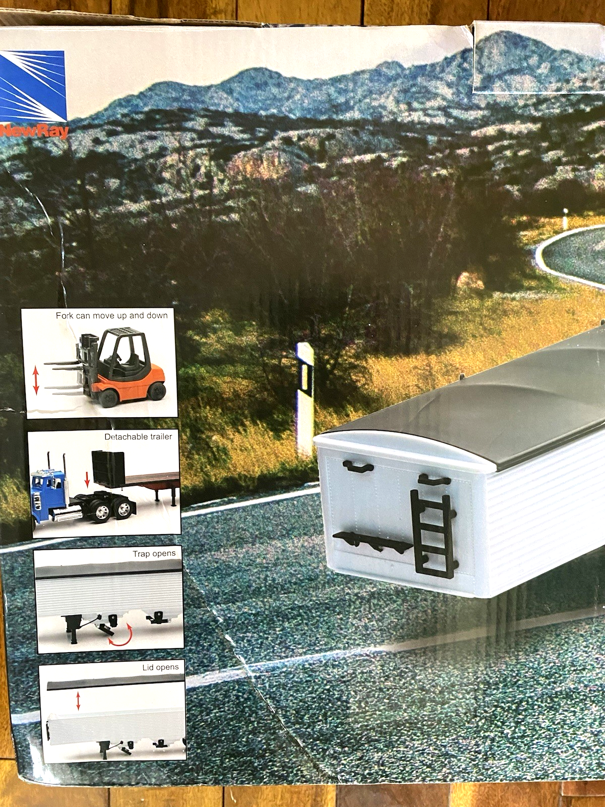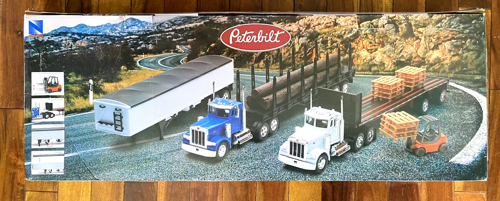 NEW-NEW RAY TRACTOR TRAILER SET.PETERBUILTS 2-TRUCKS-3 TRAILERS READ AD 1/32