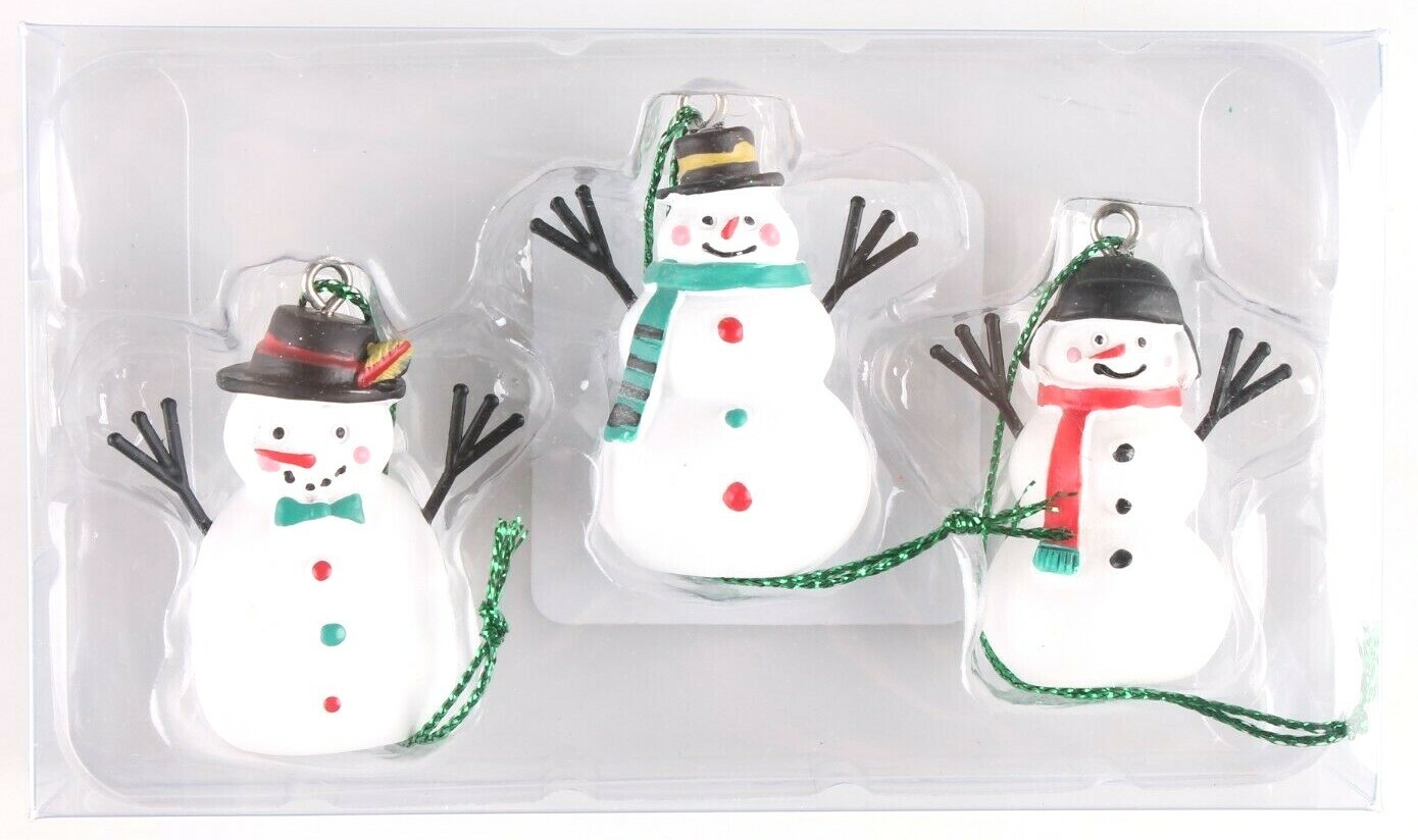 This is for a brand new set of 3 Wondershop Trend Trim Mini Wooden Snowman Ornaments