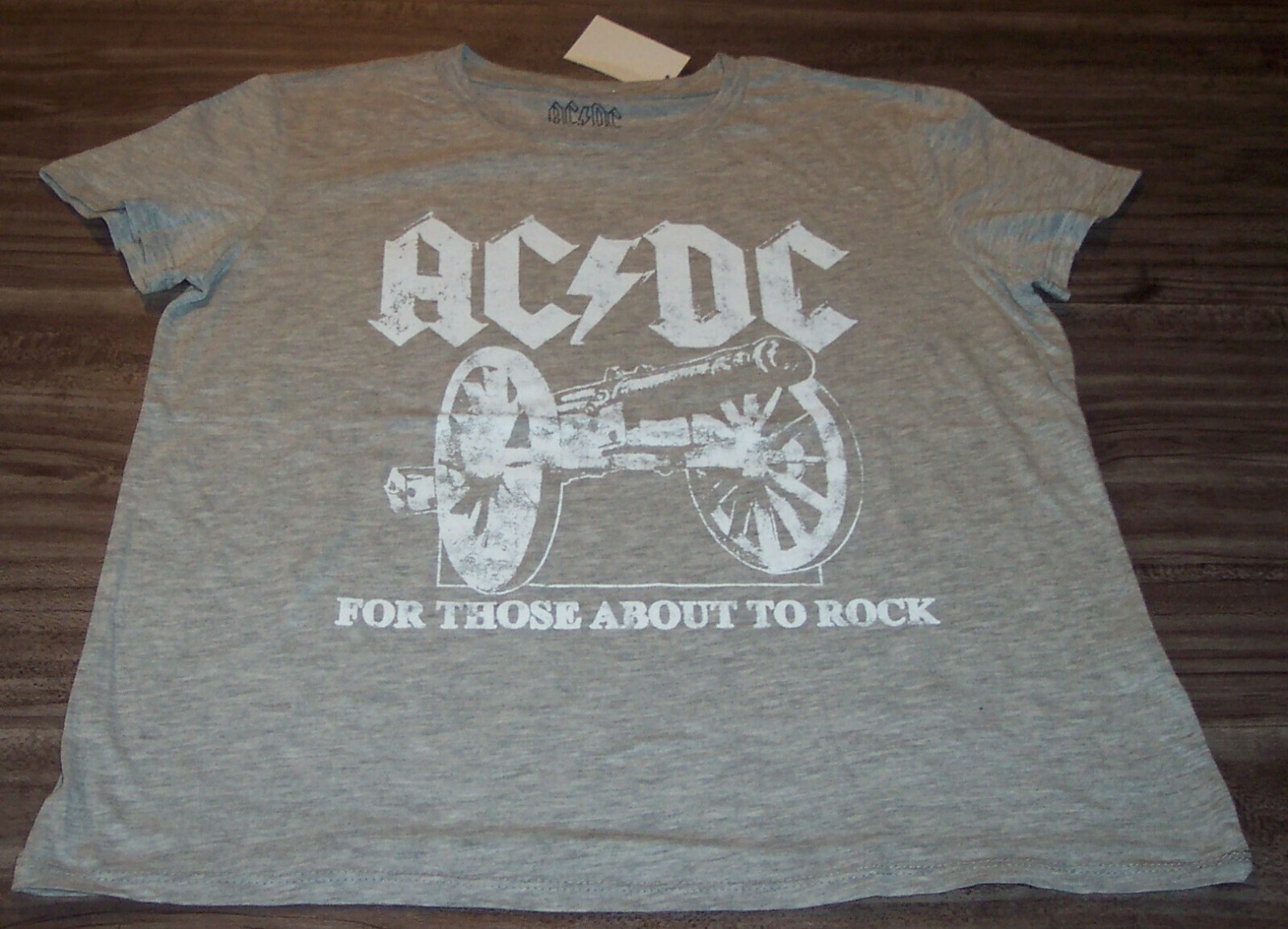 This is a WOMEN'S TEEN WOMEN'S TEEN Juniors AC-DC For Those About To Rock T-shirt. It is a Size MEDIUM and is NEW with the tag. It is 19 inches from armpit to armpit and 23 inches in length. The print is made to look vintage. AG