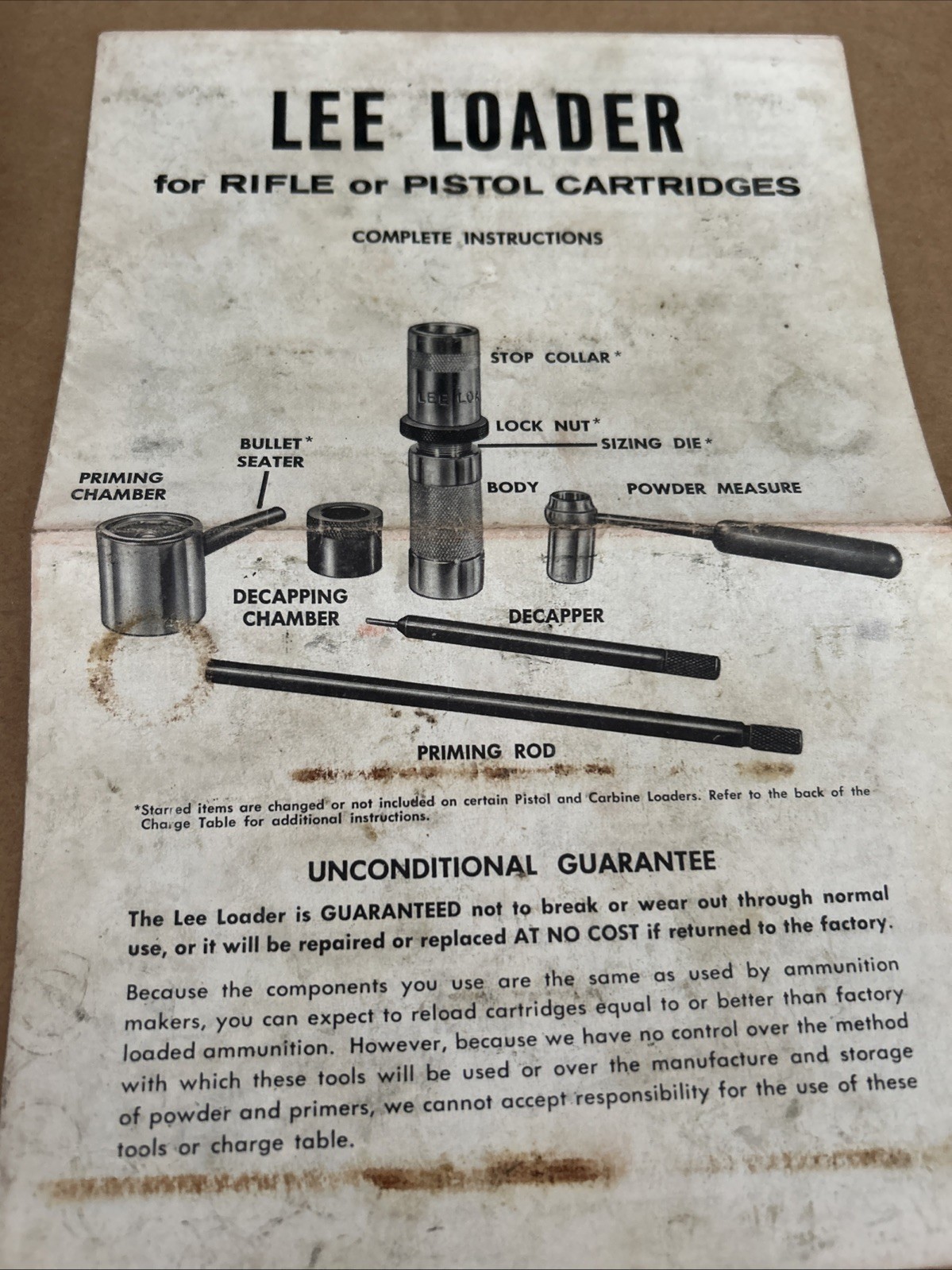 Lee Loader Reloading Die Kit for the 45 ACP / 45 Auto Rim, used as pictured and ships priority.