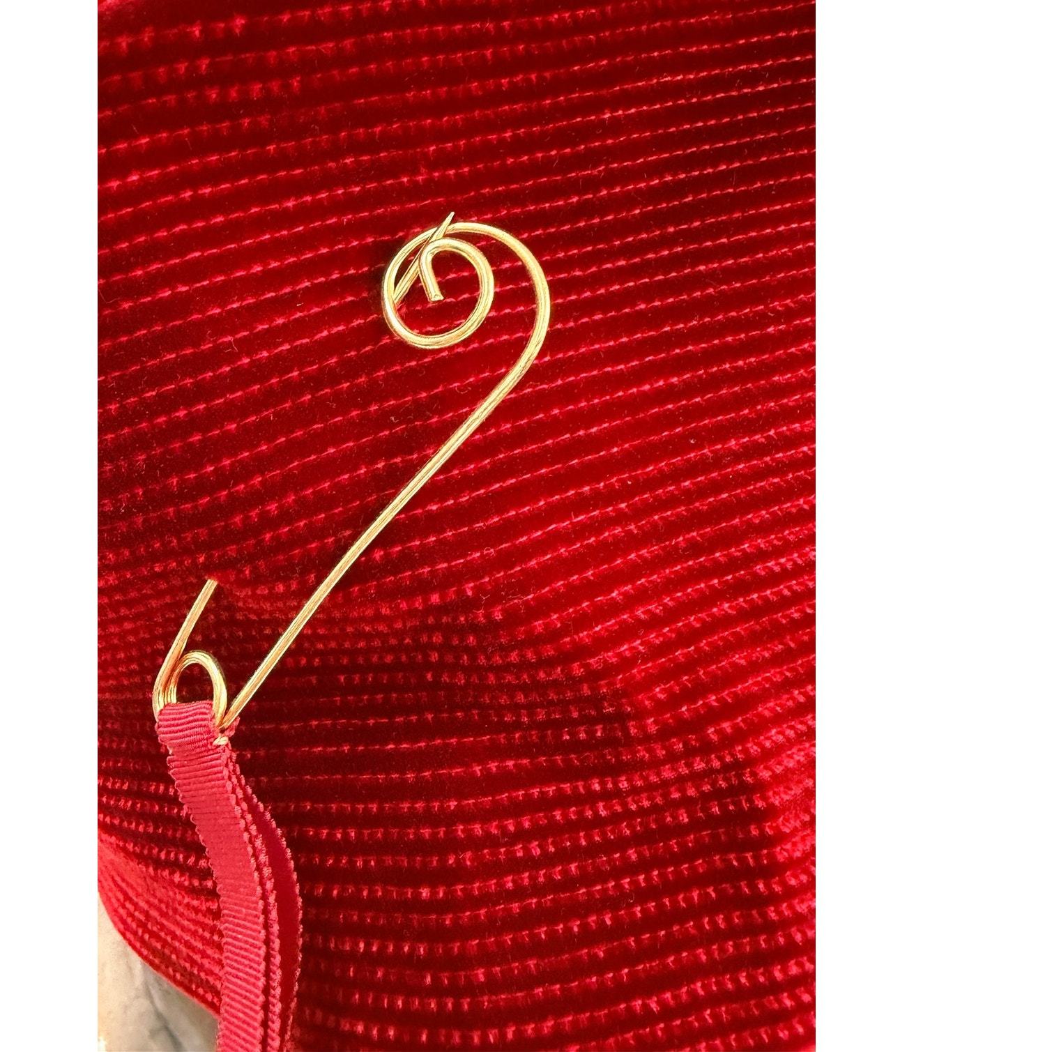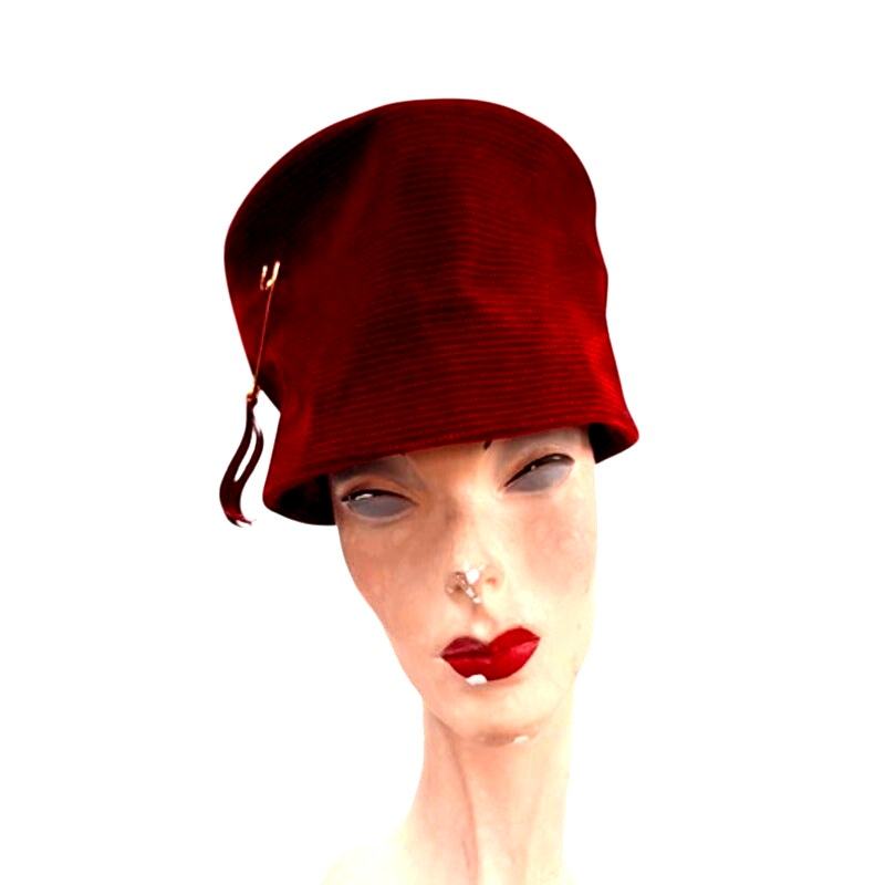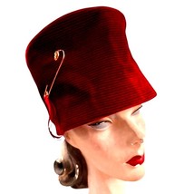 VTG 1950s Julia Spivak Red Velvet Mod Bucket Hat Gold Pin Femme Fatale Glam