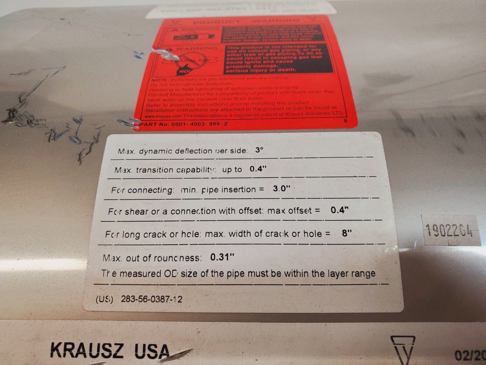 Krausz Hymax Versa Stainless Steel Coupling 14" 238-56-0387-12 | 15.22-16.48