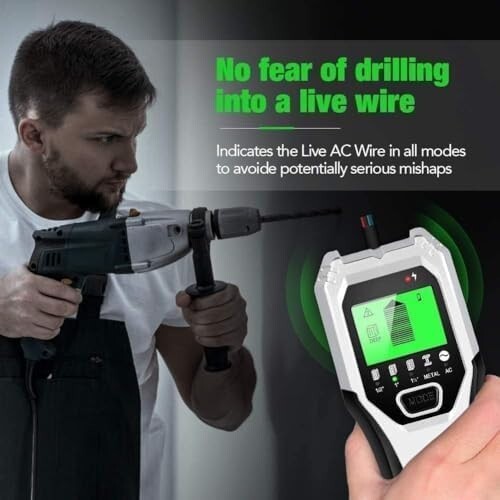 This versatile tool features 5 scan modes with a depth of up to 60mm, including drywall, metal, and live wire detection, ensuring comprehensive coverage for any task. The WireWarning system alerts you when live wires are detected up to 2 inches deep, preventing potential hazards during drilling.