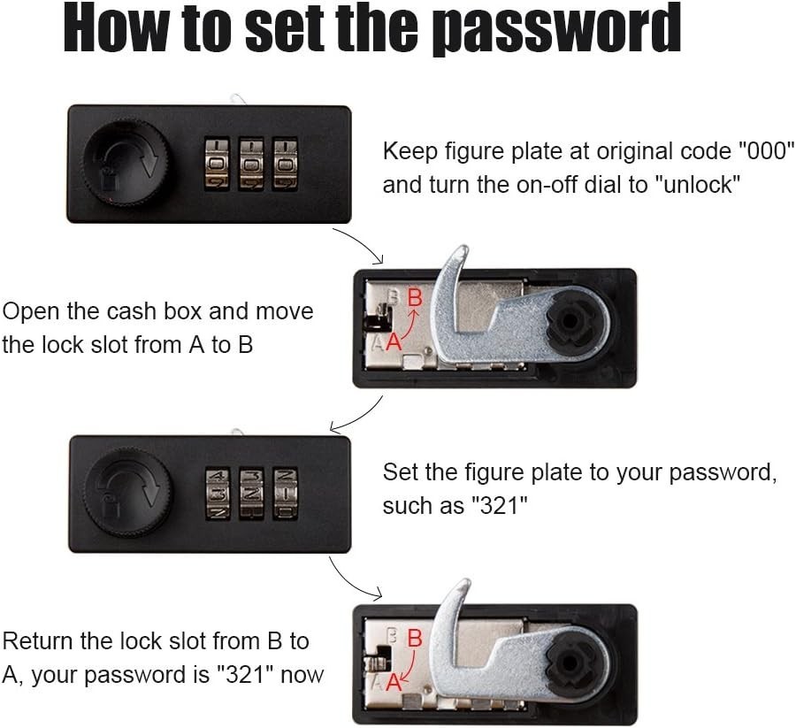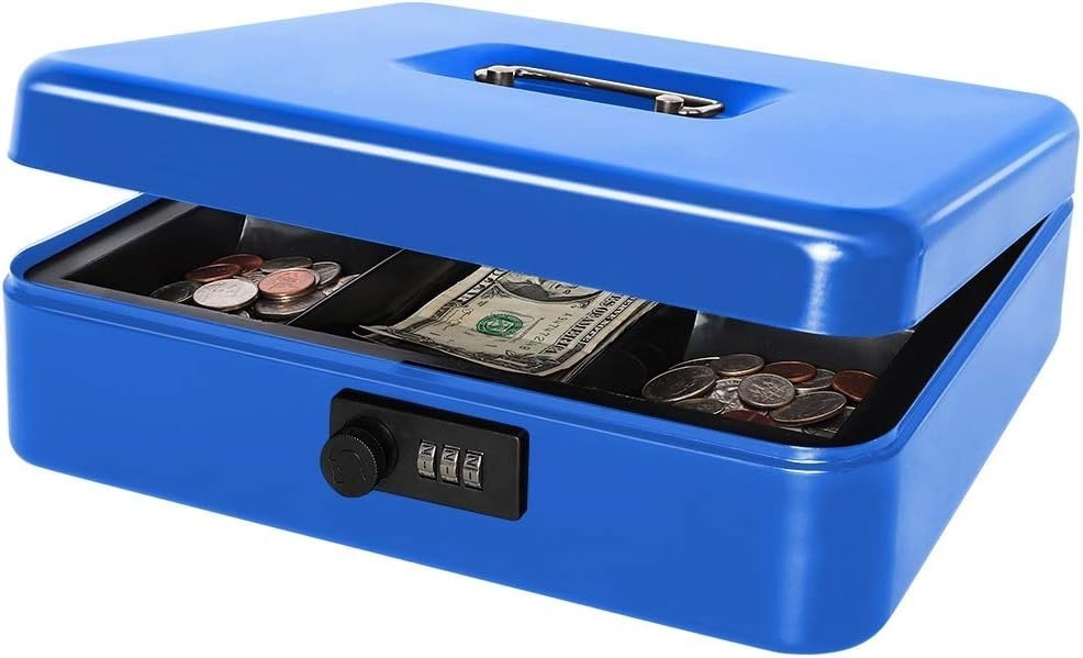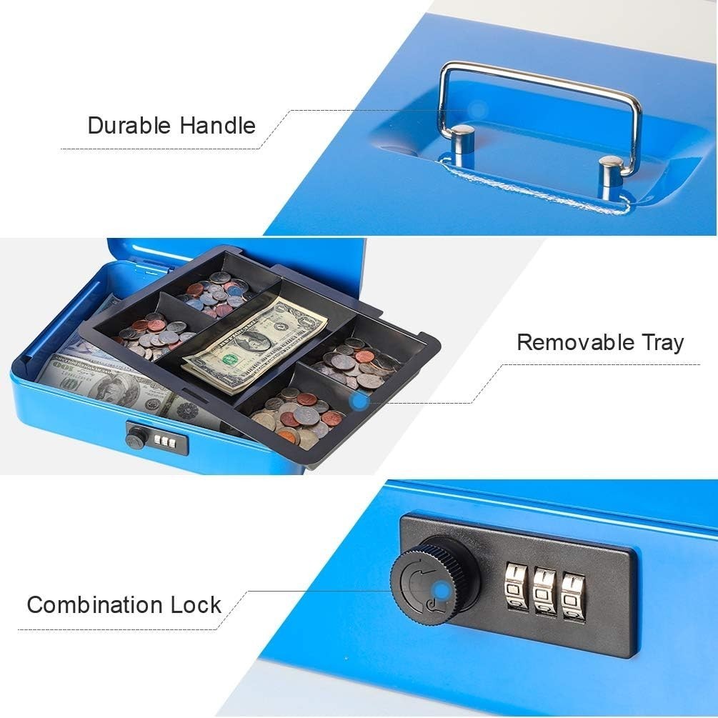 Features: Easy Push Opening,Portable,Removable coin compartment,Sturdy Handle,Combination Lock,Removable Money Tray,Large Space for Storing Valuables,Convenient Carrying Handle,Perfect for Indoor and Outdoor Use