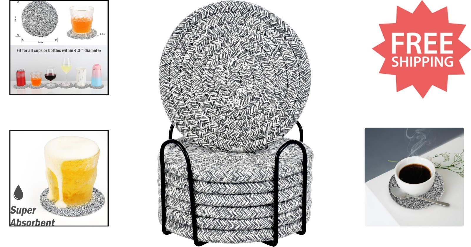 Discover the perfect blend of style and functionality with our set of 8 handmade round drink coasters. Each coaster, measuring 4.3 inches in diameter and 0.3 inches thick, features a super-absorbent cotton and linen construction that offers superior heat insulation and protection for your furniture. Designed with a minimalist aesthetic, these natural material coasters seamlessly complement any home decor?ideal for kitchens, bedrooms, or dining areas. Durable and soft to the touch, they prevent scratches and noise when moving. Conveniently stored in a sleek black metal holder, these coasters are dishwasher safe or easily rinsed and air-dried. An excellent thoughtful gift for occasions like Easter, Christmas, or housewarmings, they combine practicality with style. To ensure fast and reliable delivery, we work with multiple fulfillment partners and suppliers. Depending on availability and location, your order may ship from different warehouses or arrive in packaging that varies from item to item. Tracking details are typically provided shortly after shipment, and customer satisfaction remains our top priority. Please note that due to carrier policies and regional regulations, certain items may not be eligible for delivery to specific states or territories.