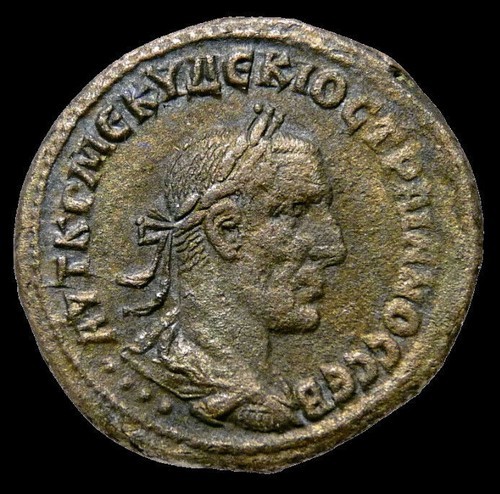 Obverse: AYT K ? ME KY ?EKIOC TRAIANOC CEB, laureate, draped, and cuirassed bust right seen from behind; four pellets ???? below bust.