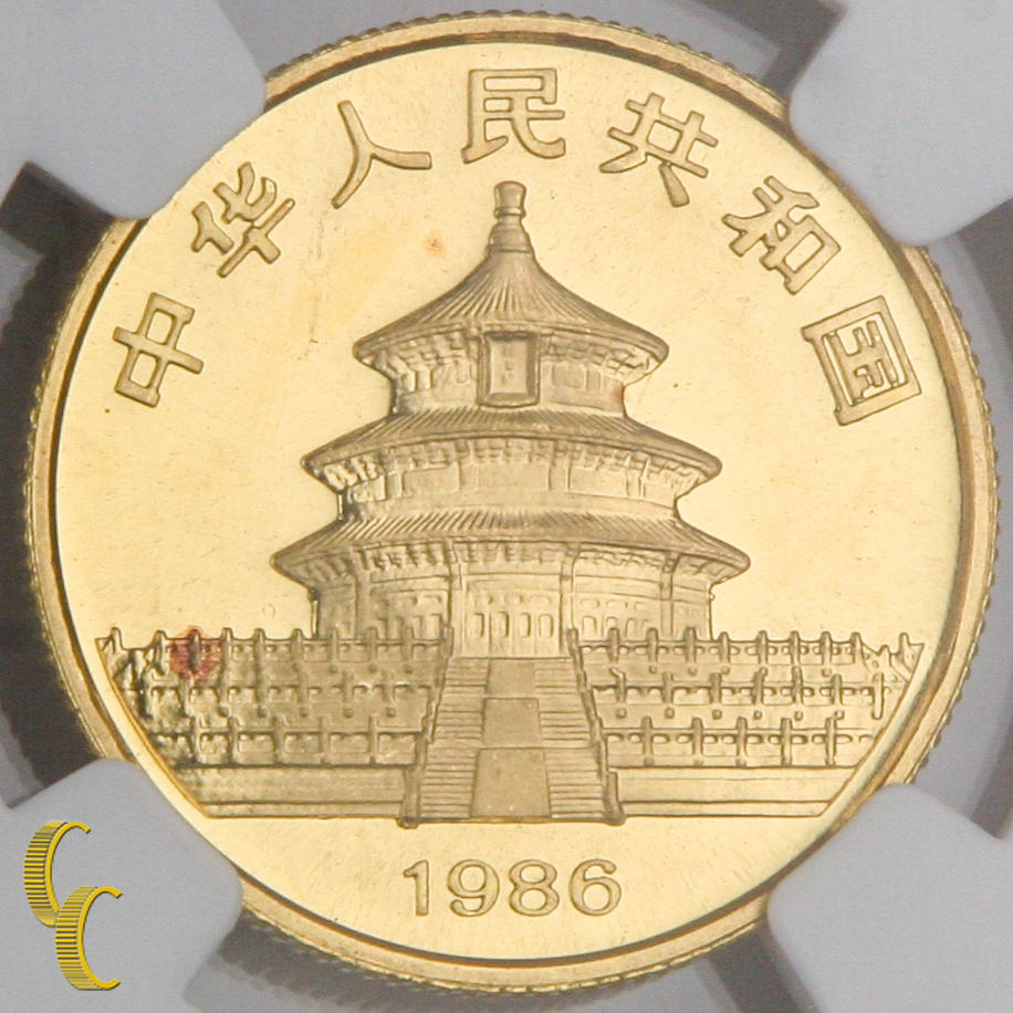 Panda De Oro Chino G25Y 1986 1/4 Onza Calificado Por NGC Como MS-68