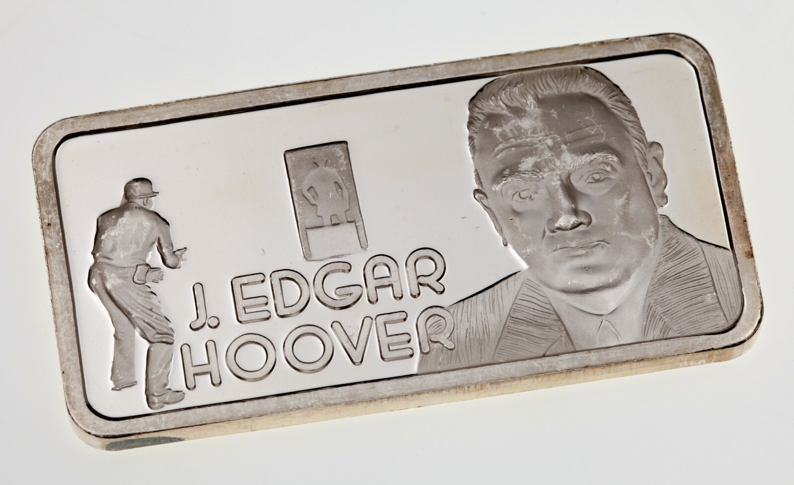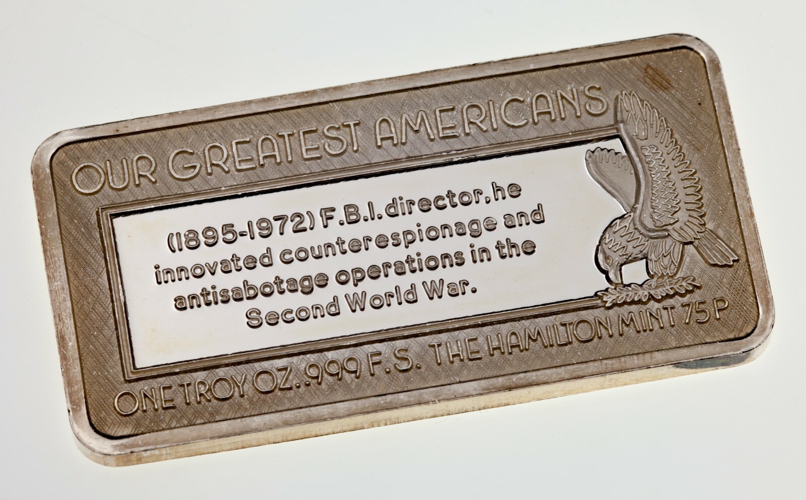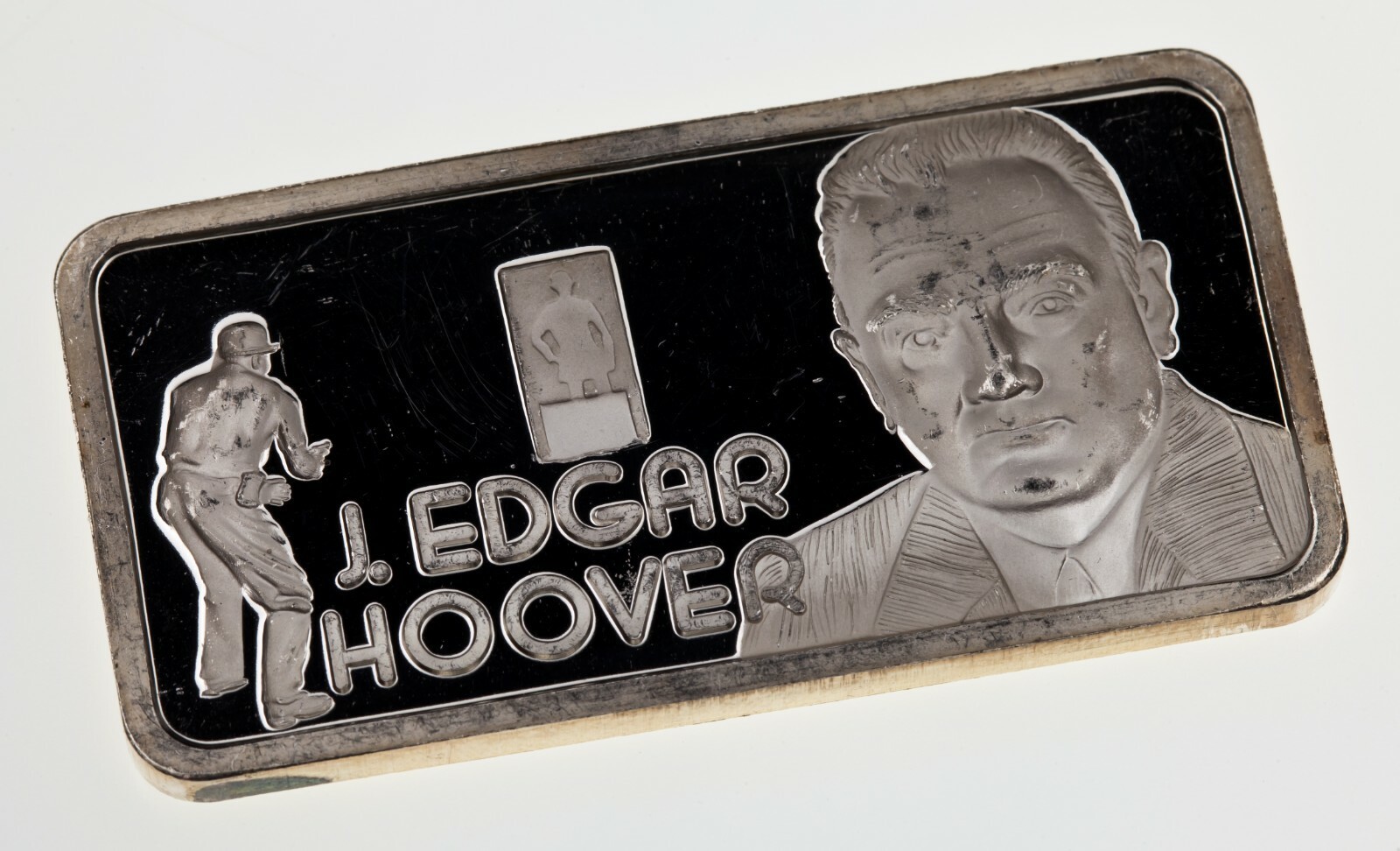 1975 The Hamilton Mint Art Bar 1 Oz. Silver Bar di J. Edgar Hoover