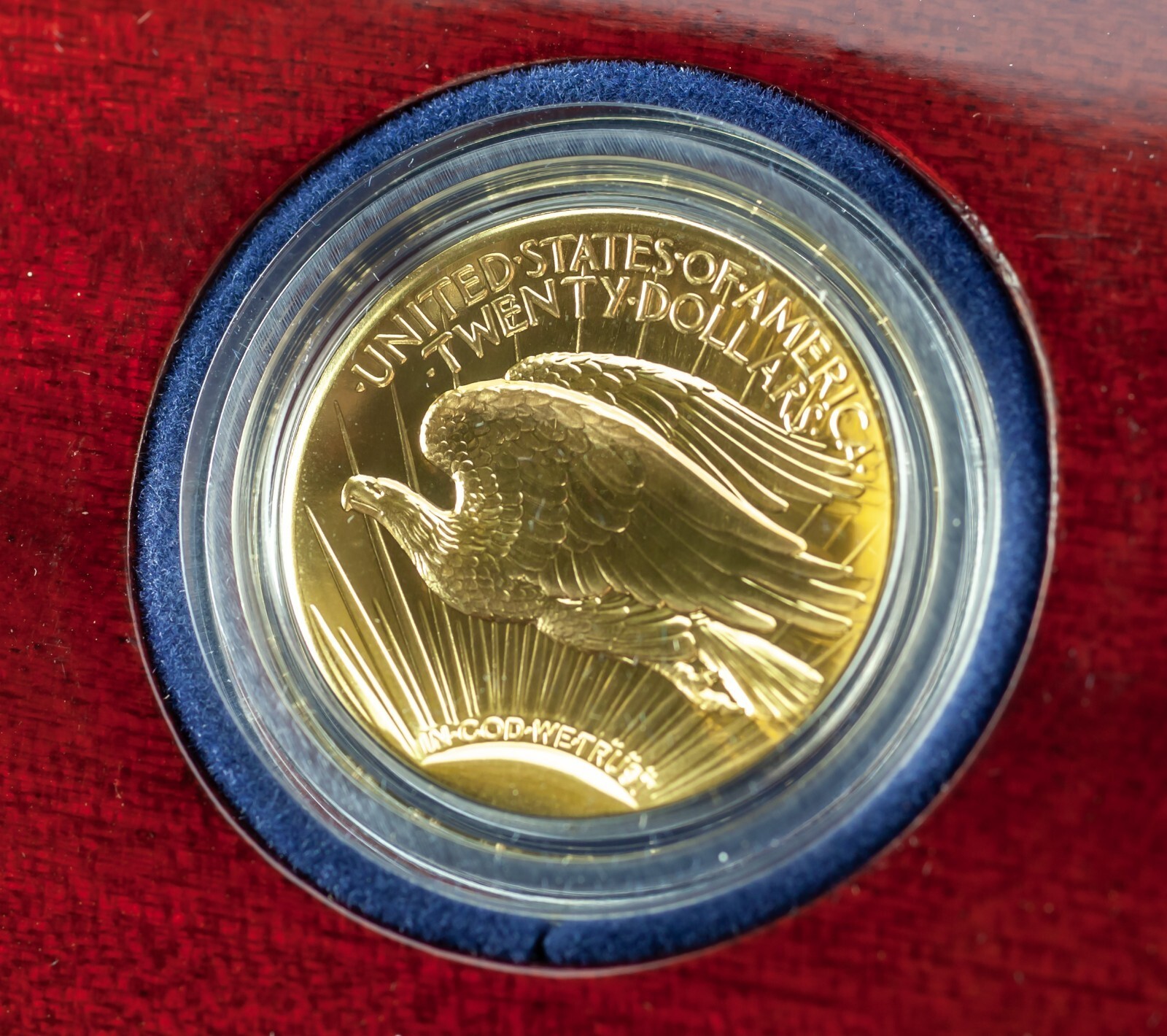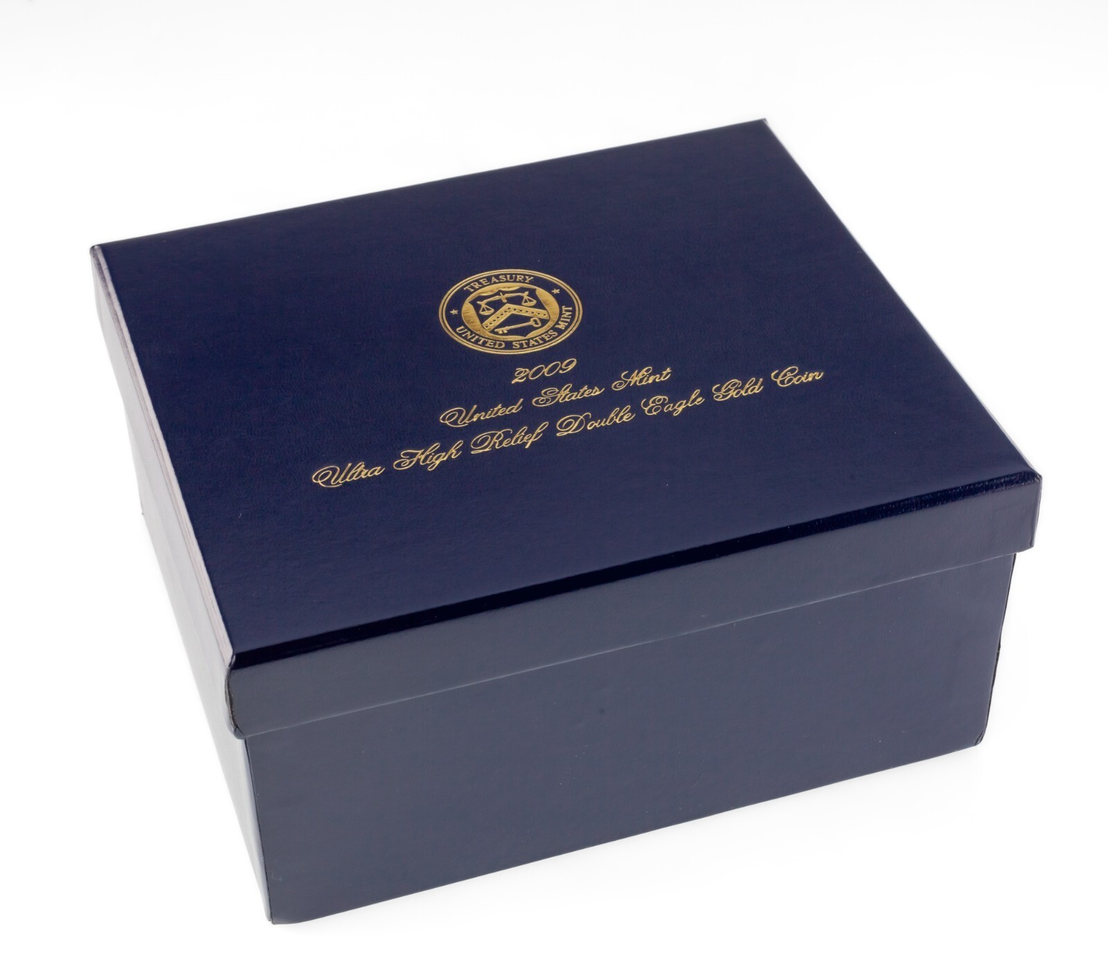 2009 Ultra altorilievo 1 Oz. St. Gaudens .9999 Scatola per monete in oro, custodia e certificato di autenticita OGP