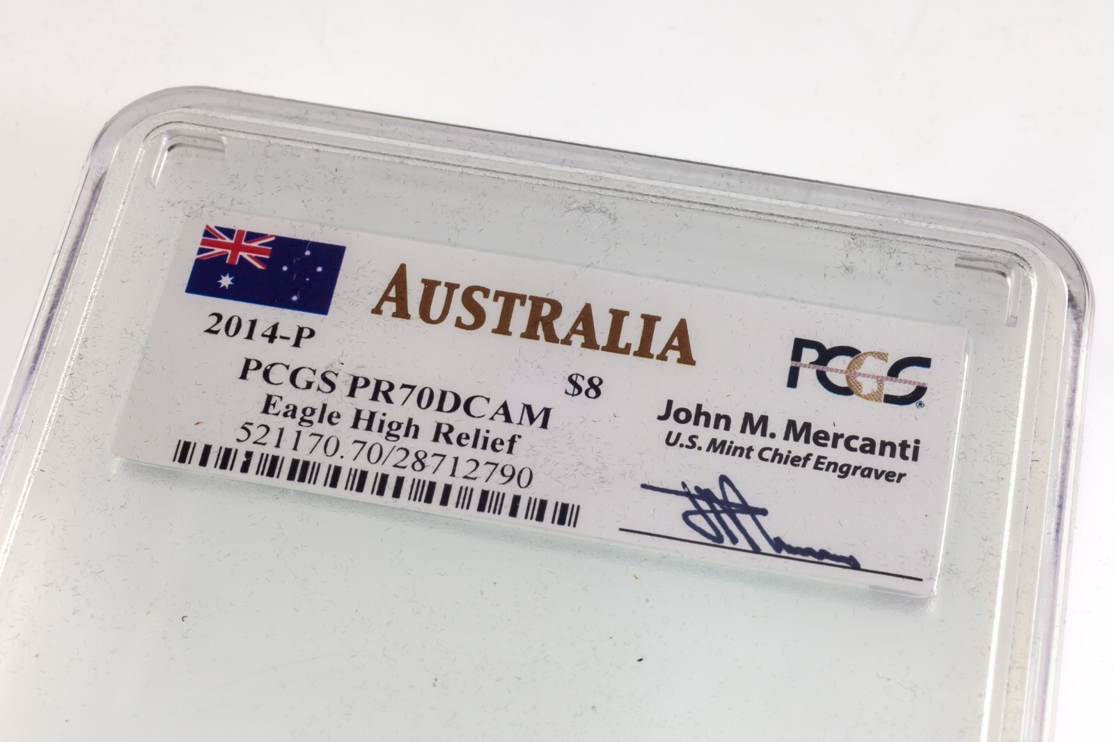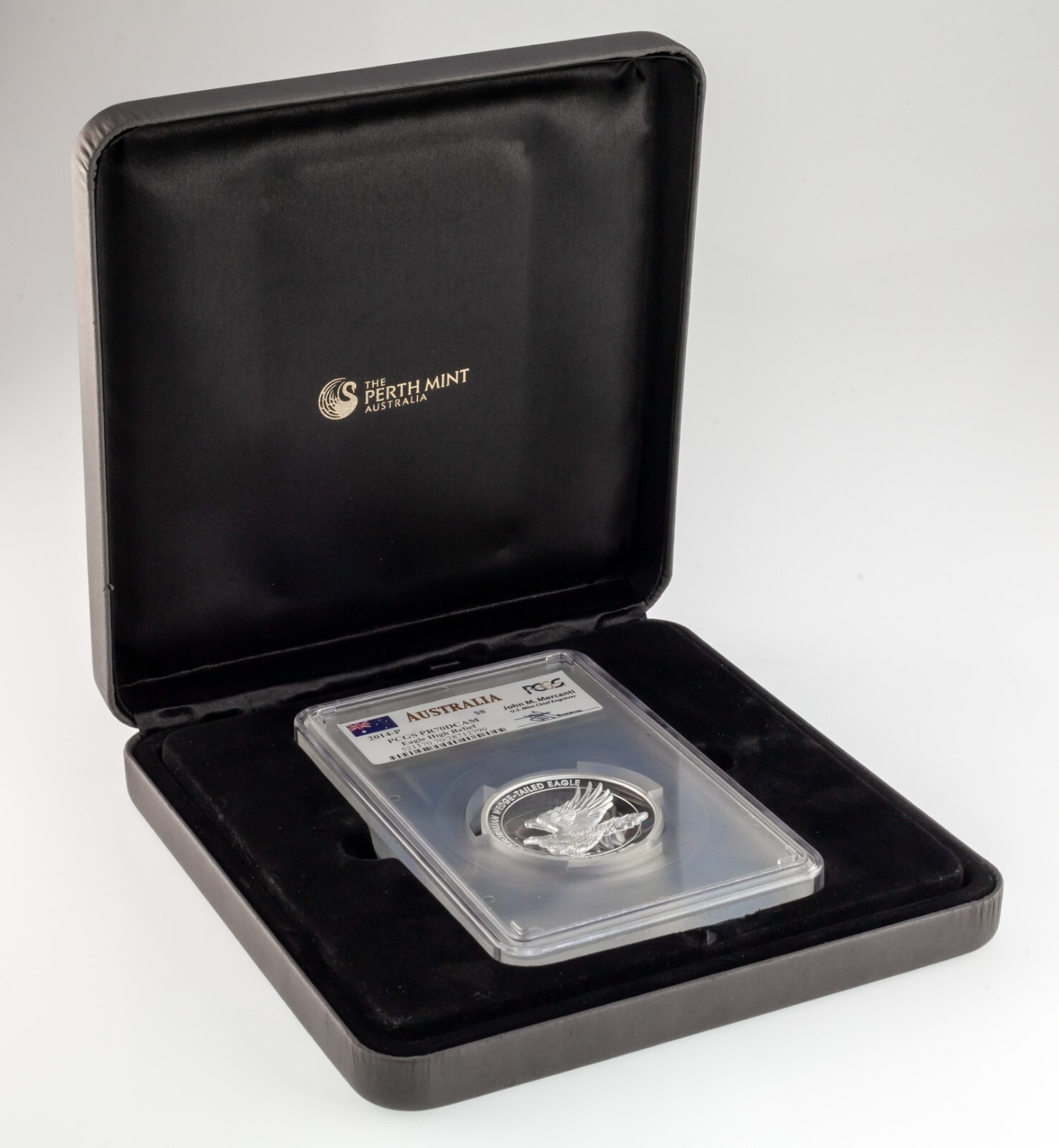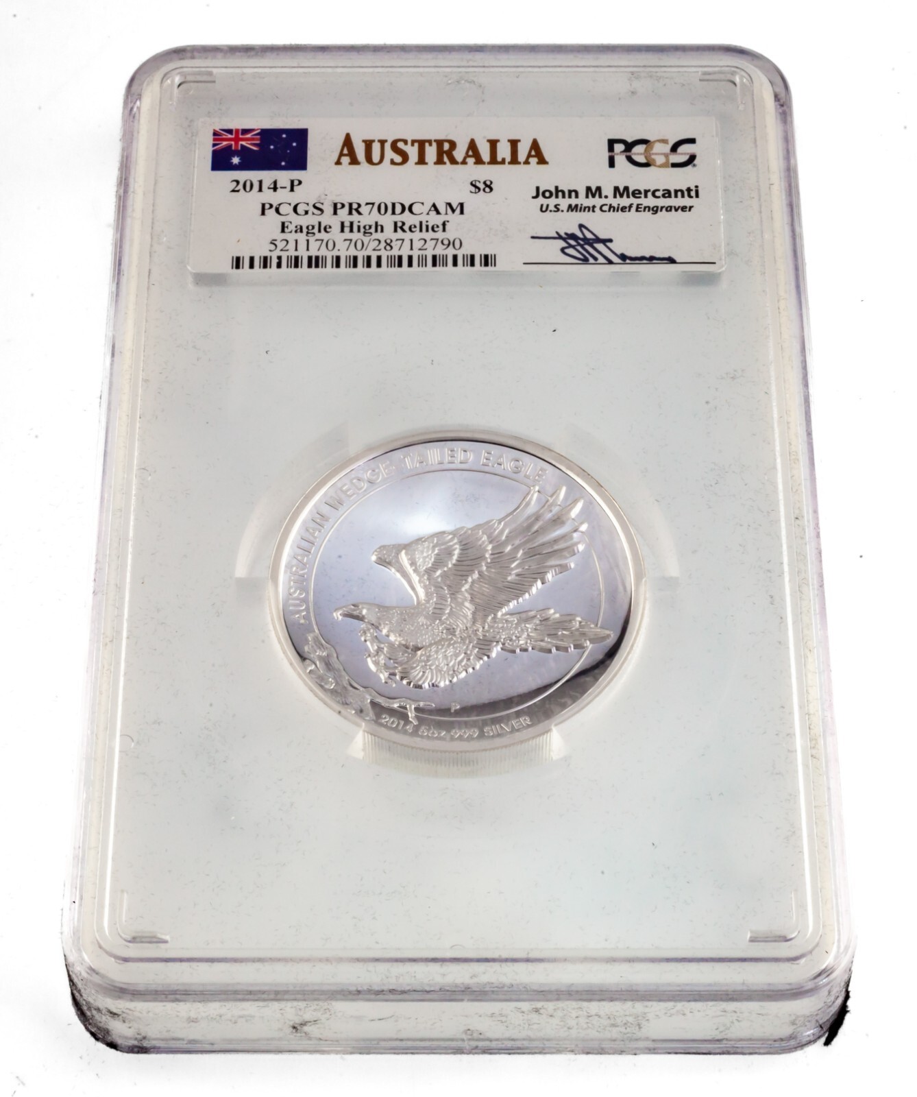 2014-P Australie S$8 Argent Aigle a queue compensee PCGS PR70DCAM Boîte CoA Mercanti