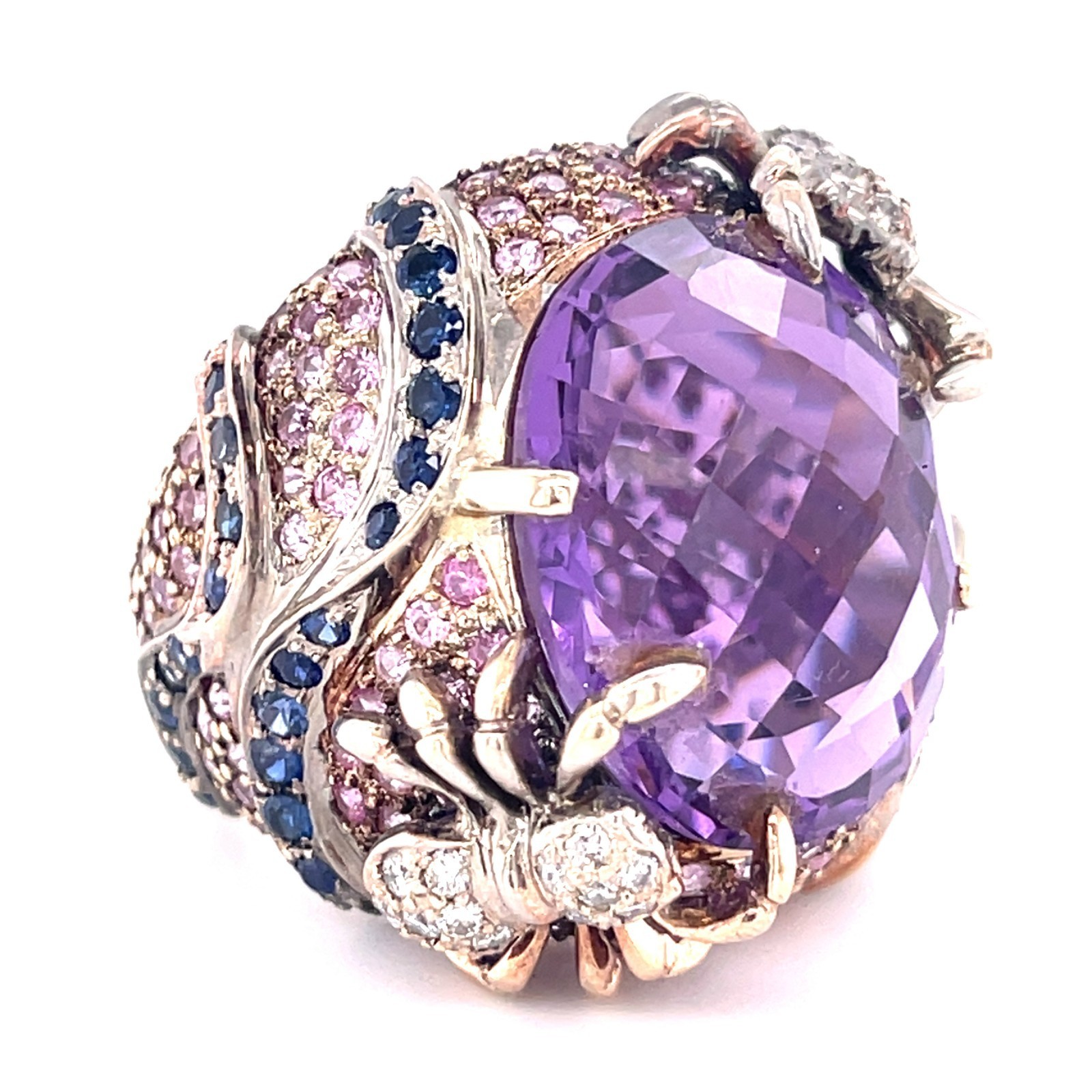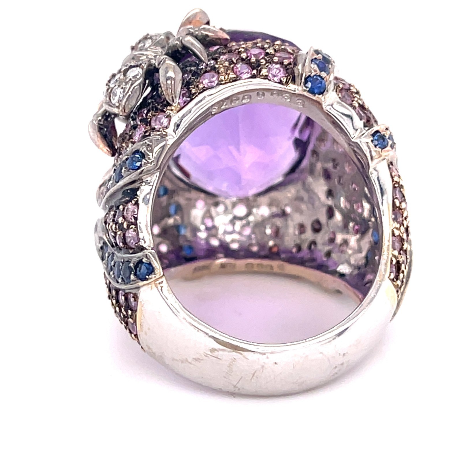18k Oro Bianco 20 KT Ametista Cocktail Anello Con Zaffiro e Diamante Accenti