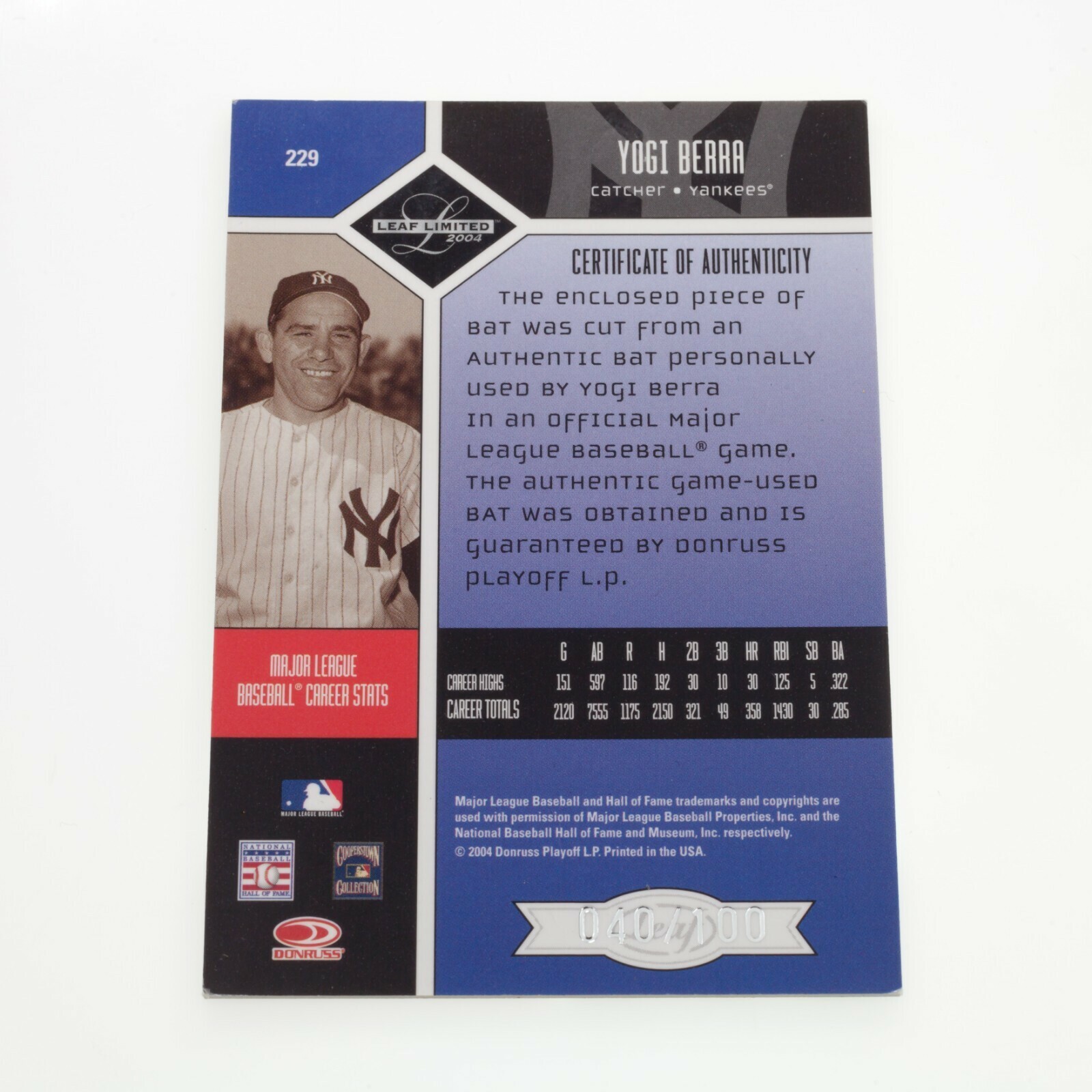 2004 Donruss Foglia Limitata Yogi Berra Game-Used Pipistrello Scheda #229/100