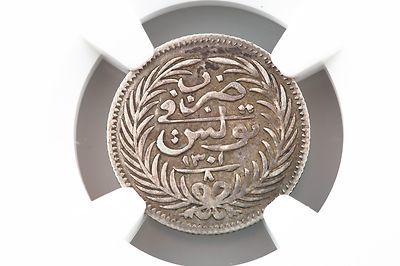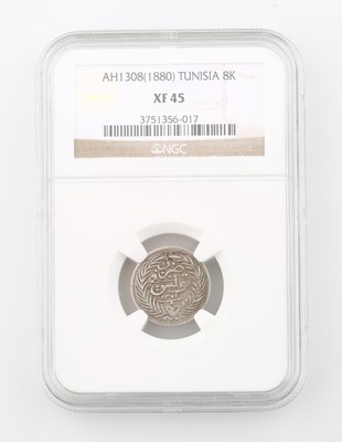 1880 Tunisia 8 Kharub Silver Coin Slibd XF 45 NGC extra fine km 181 Ah 1308