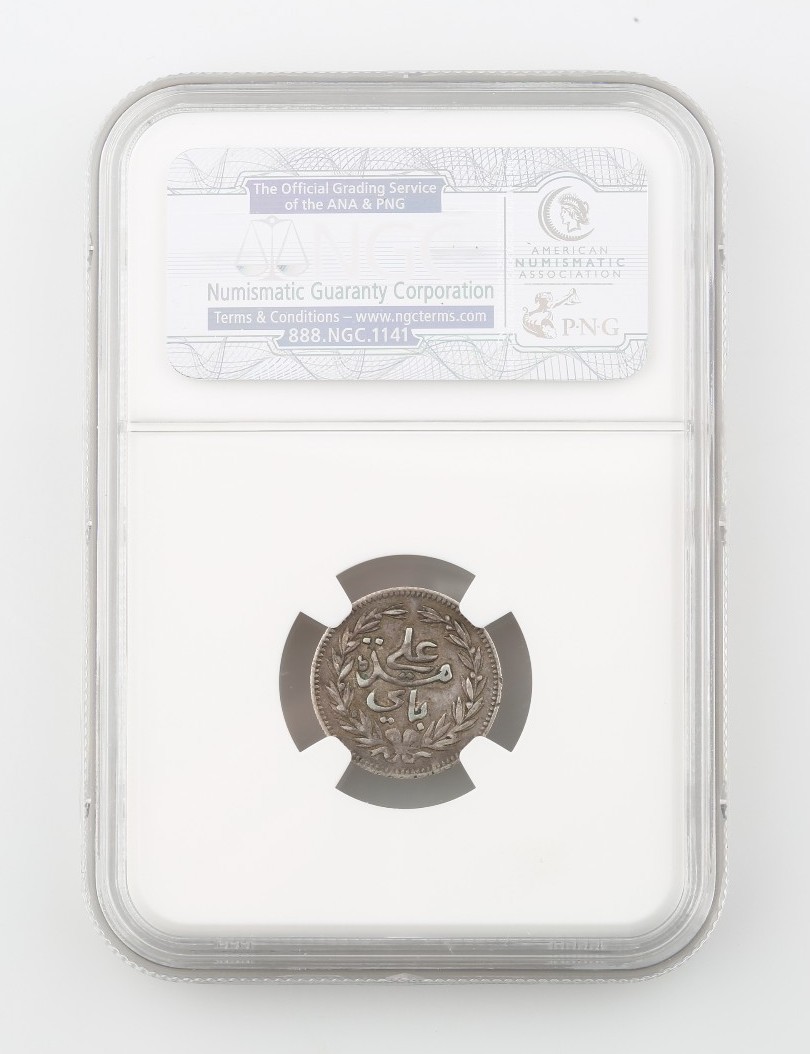 Slabata da NGC con il titolo "Ah1308 (1880) Tunisia 8K"