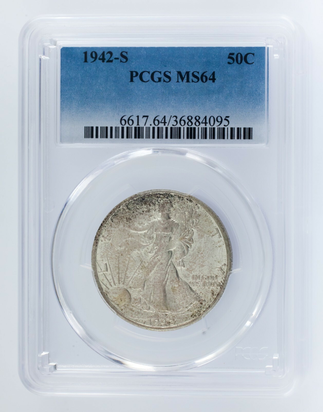 1942-S 50C Walking Liberty Half dollaro classificato da PCGS come MS64! Splendido camminatore!