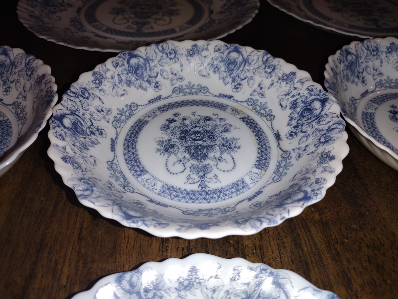 ARCOPAL HONORINE BLUE FLORAL SCALLOP EDGE 10 PC PLATE BOWL SAUCER SET FRANCE