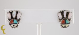 Sterling Silver Lapidary Inlay Bear Paw Clip-On Earrings Zuni