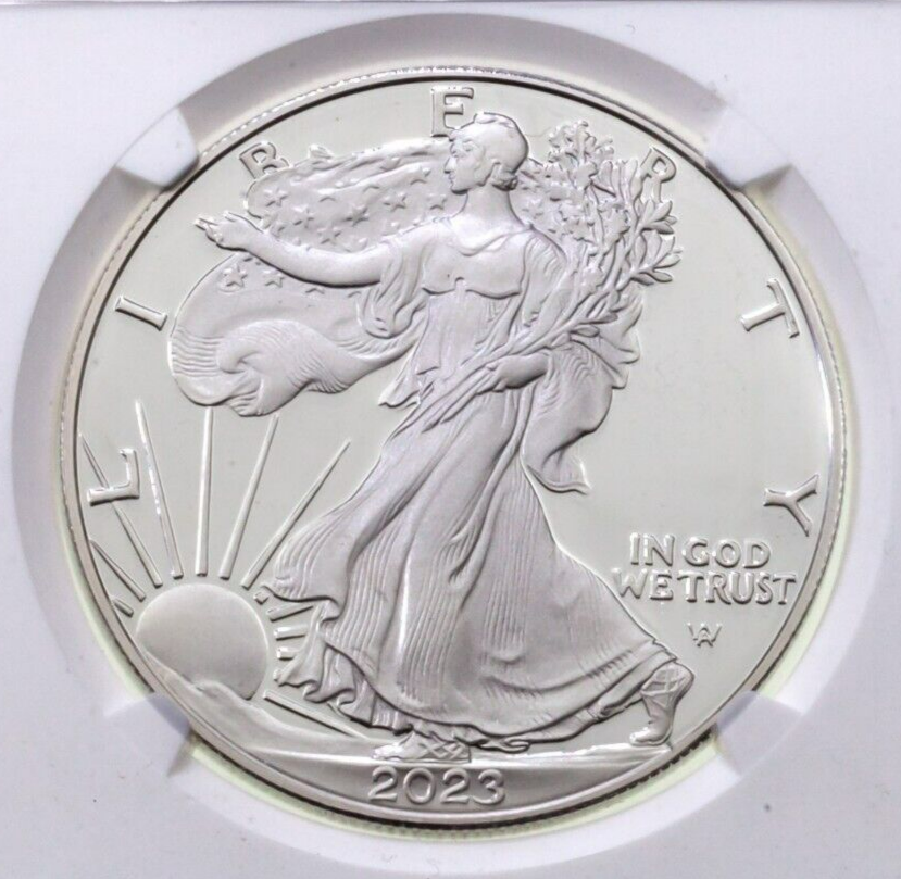 2023-W S$1 Silver American Eagle Proof Graded by NGC as PF69 Ultra Camoe ER