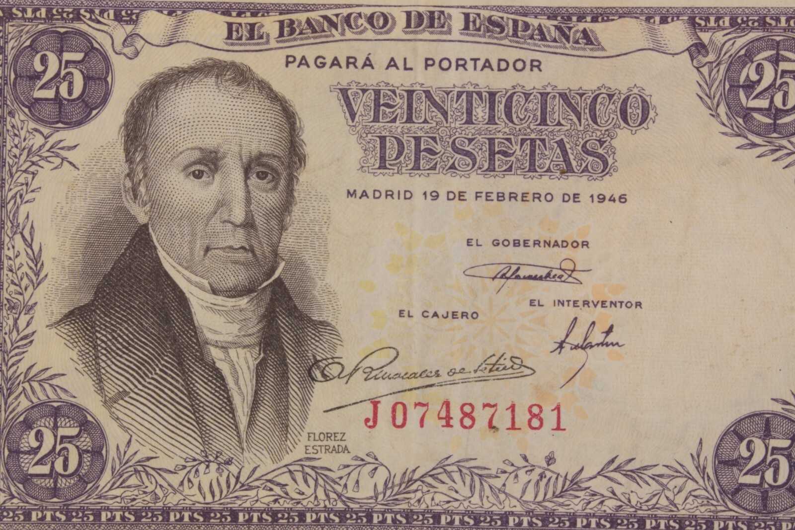 1946 Spanien 25 Pesetas Hinweis // sehr fein+ (vf+) // pick#130a.1