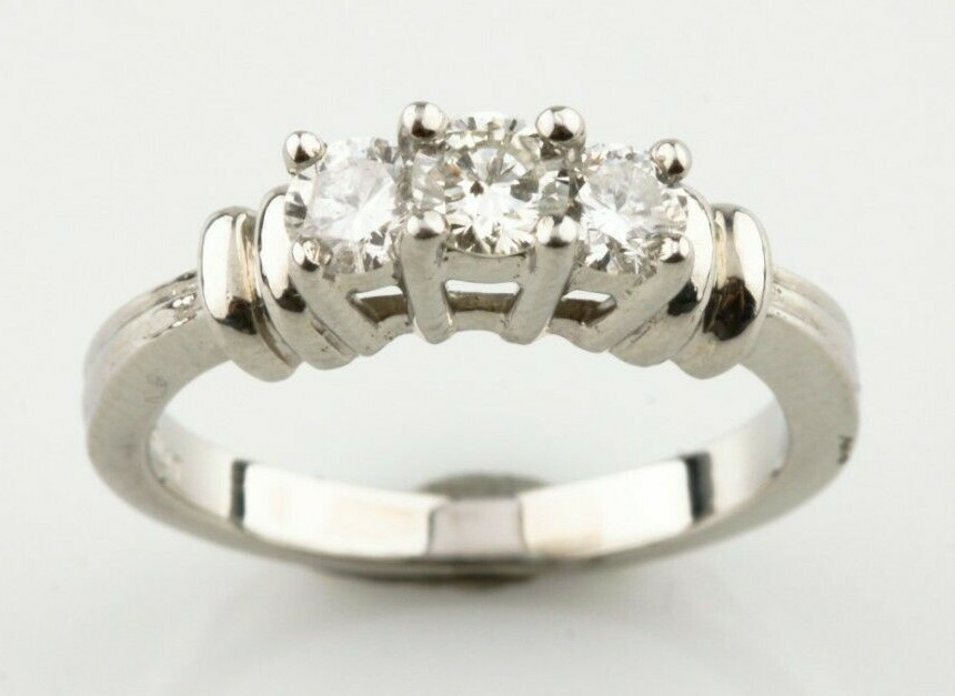 0.70 Karat Drei Steine Diamant 14k Weiss Gold Verlobungsring Große 6.75
