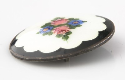 Schones handbemaltes Blumenmuster auf Guilloche White Emaille mit schwarzer Emaille-Grenze