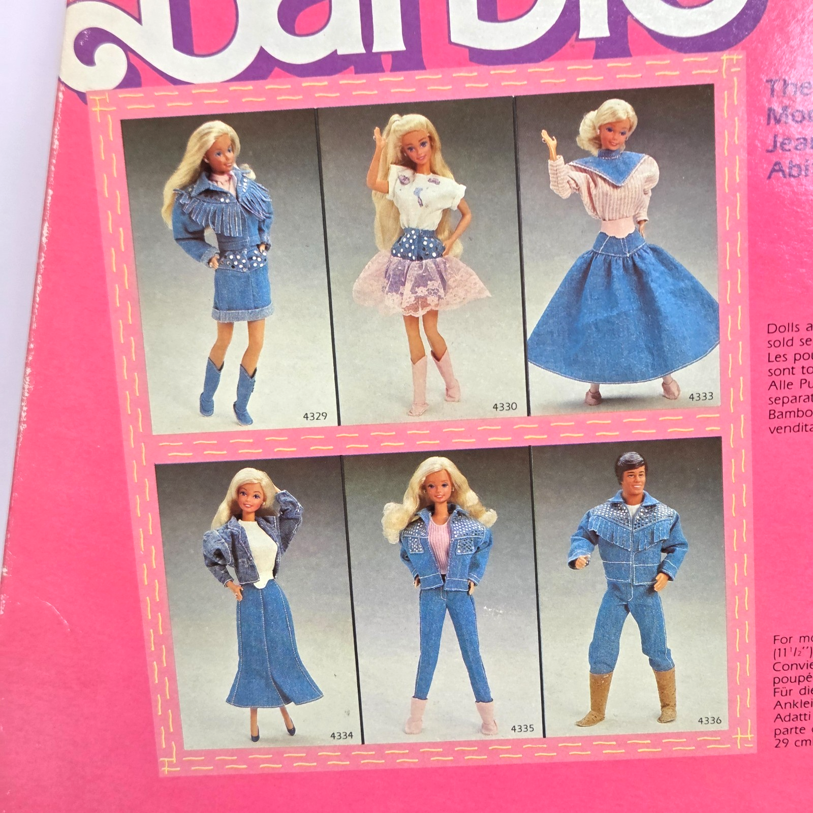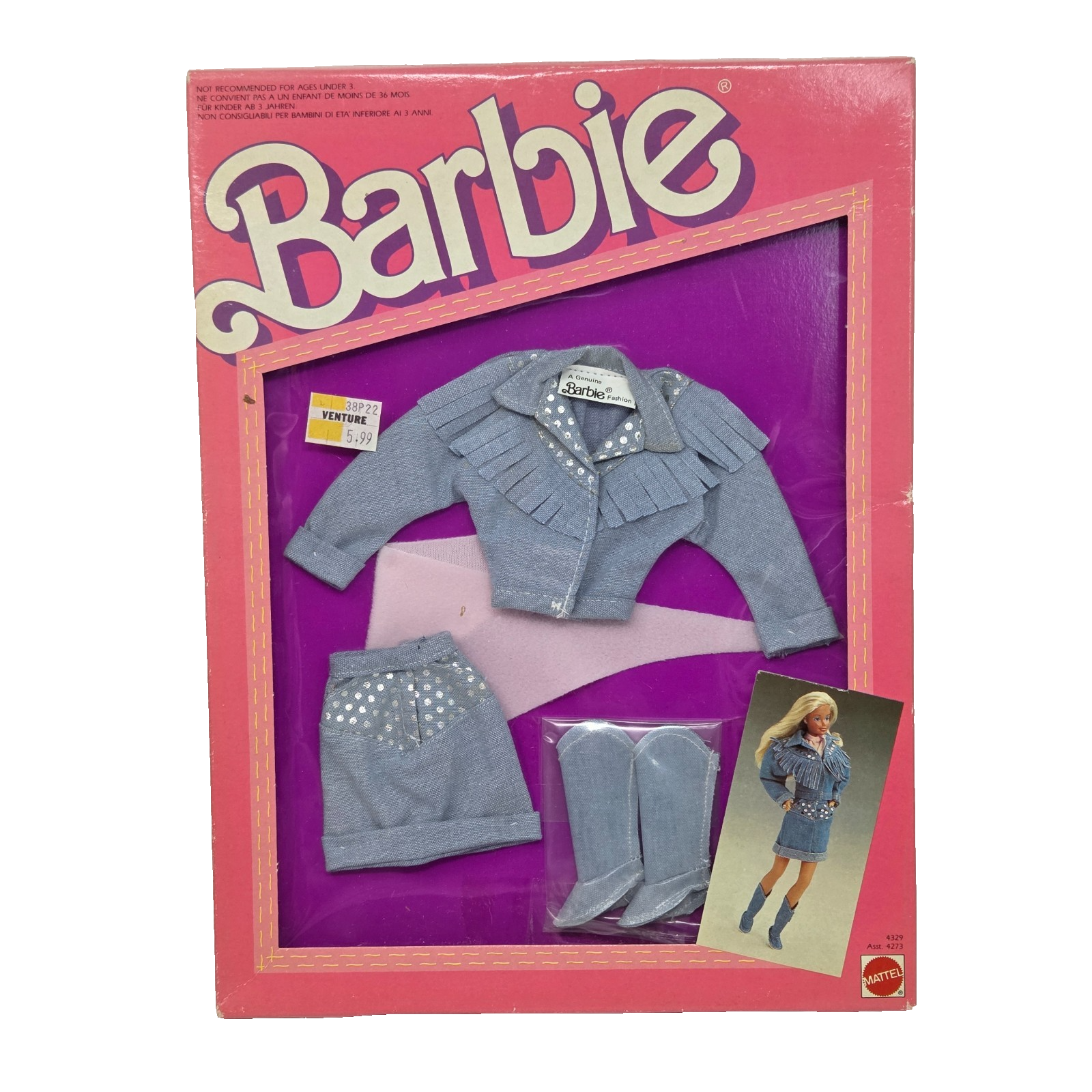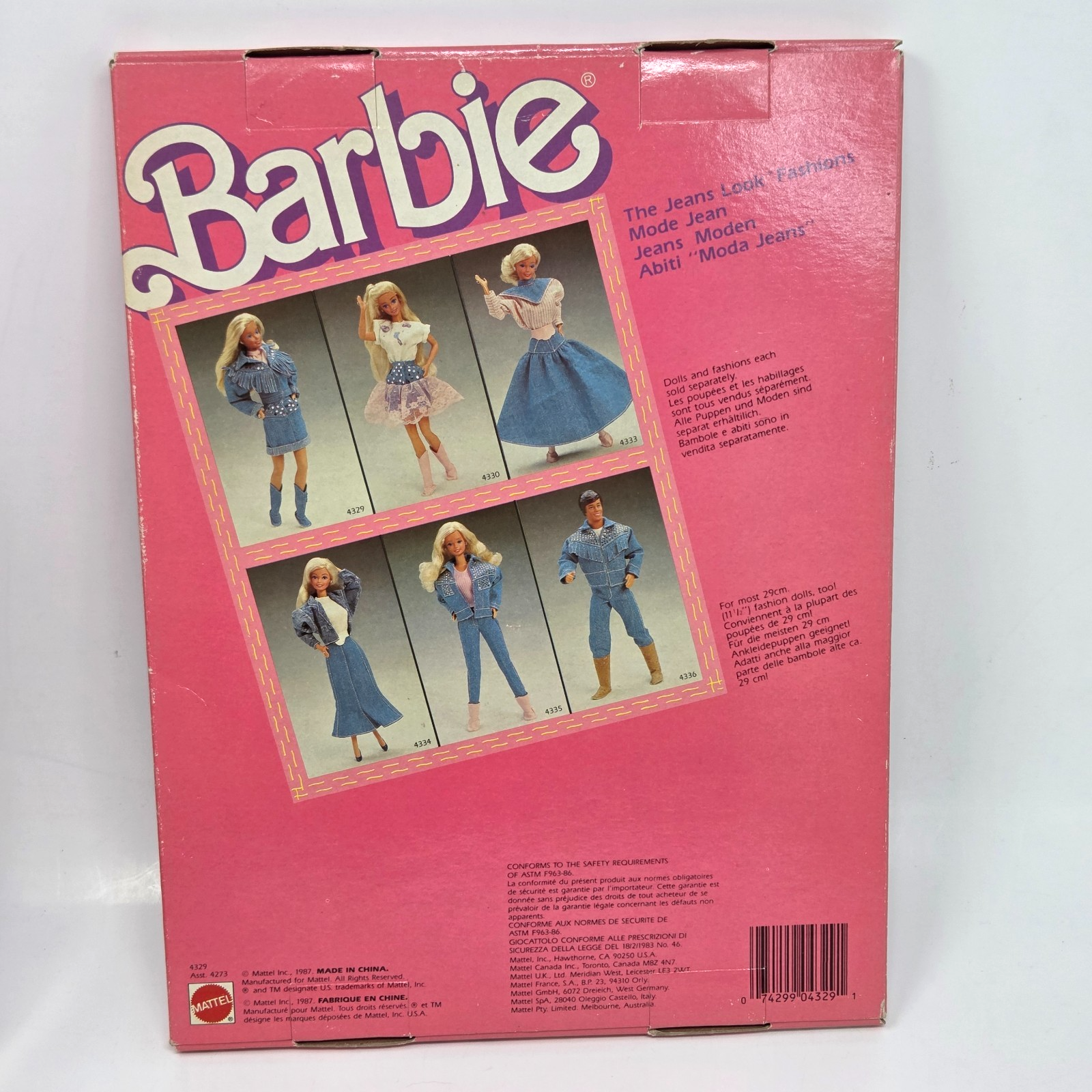 VINTAGE 1987 BARBIE CLOTHING FASHIONS JEANS LOOK # 4329 MATTEL NEW IN PACKAGE