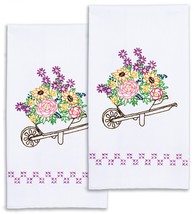 Jack Dempsey Needle Art Wheelbarrow of Flowers Decorative Hand Towels.