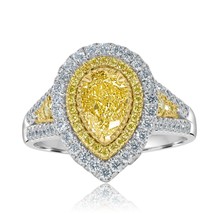 GIA 2.08 CT Pear Natural Light Greenish Yellow Diamond Engagement Ring 18k Gold