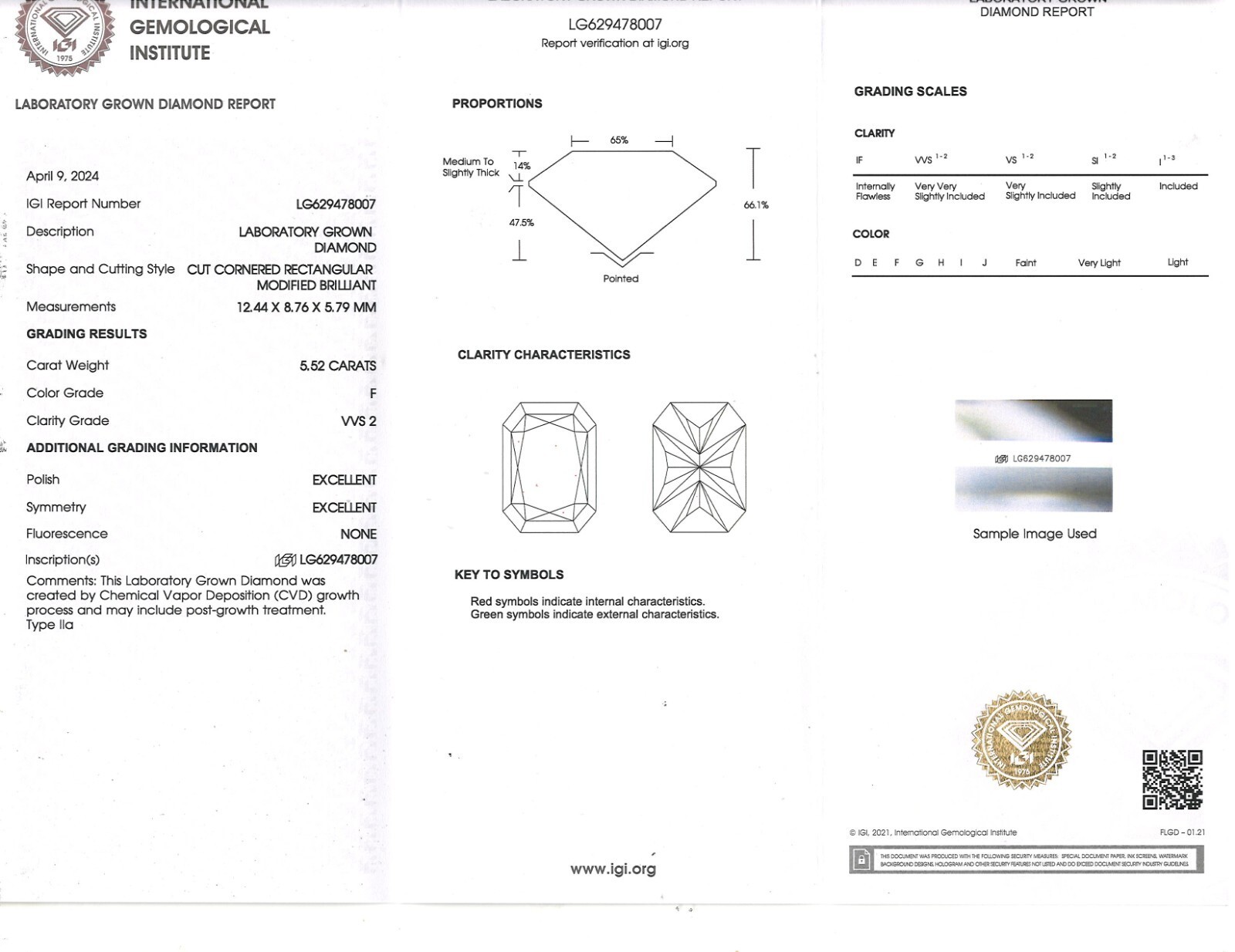 Radiant Cut 5.52 Ct IGI F-VVS2 Lab Grown and 43 similar items