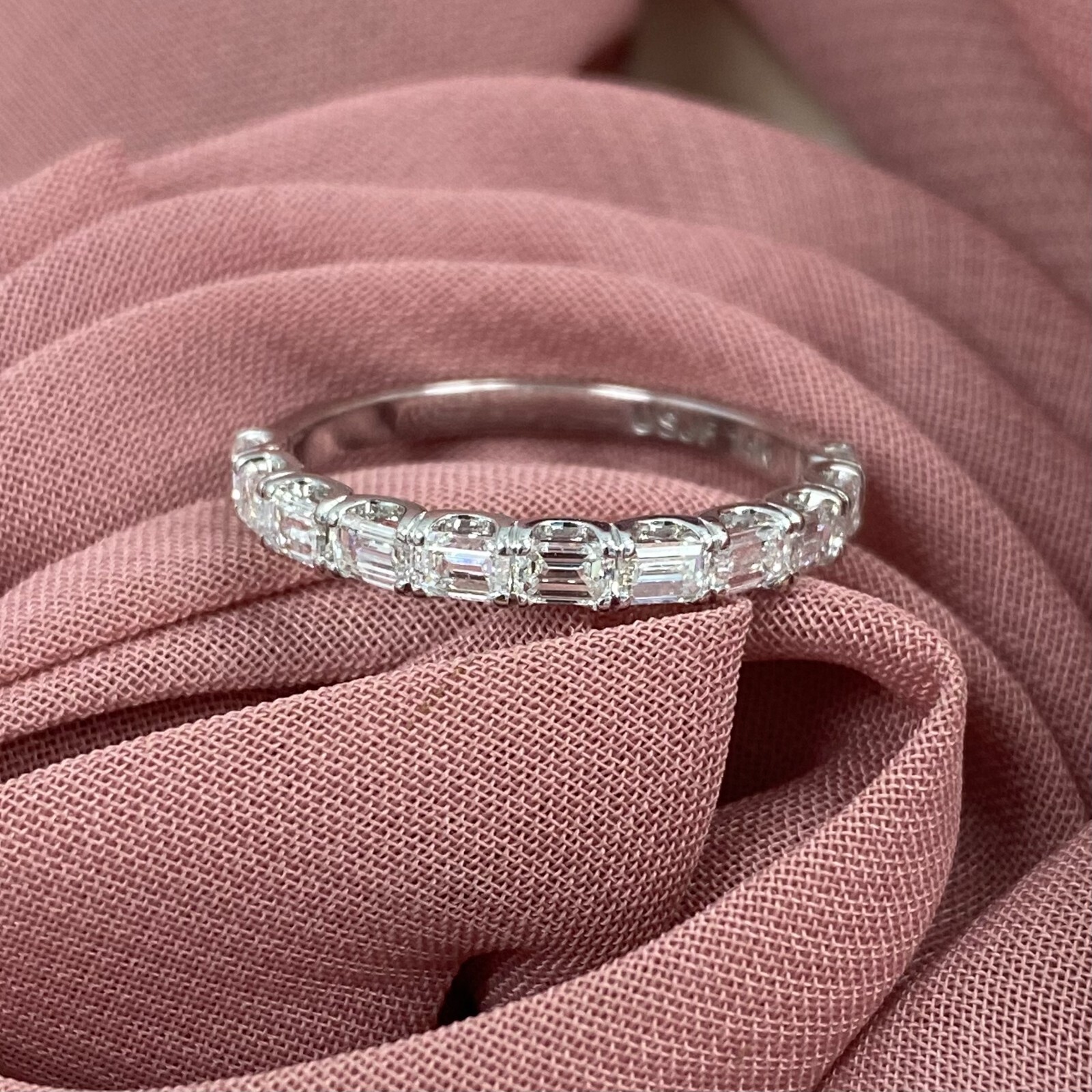 1 Carat East West Emerald Cut Lab Grown Diamond Wedding Band 14k White Gold