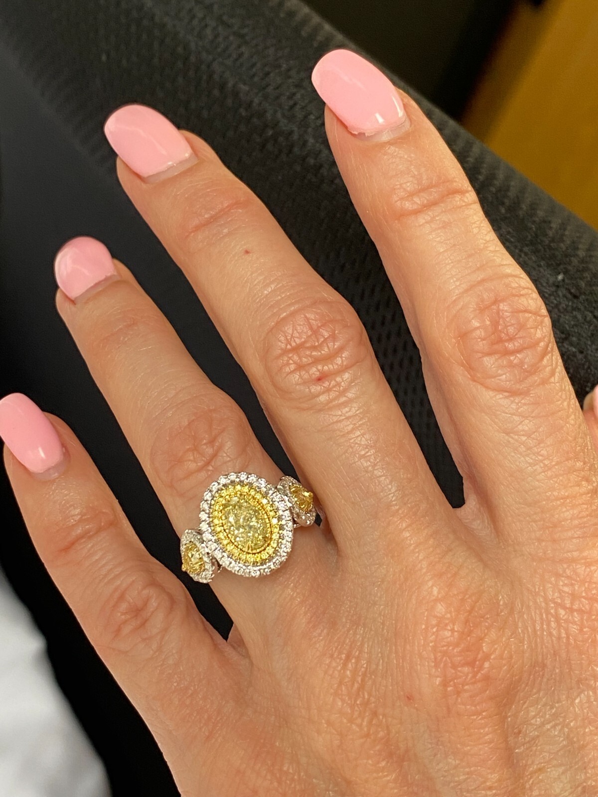 GIA Certified 2.47 Carat Oval Cut Light Yellow Diamond Engagement Ring 18k Gold