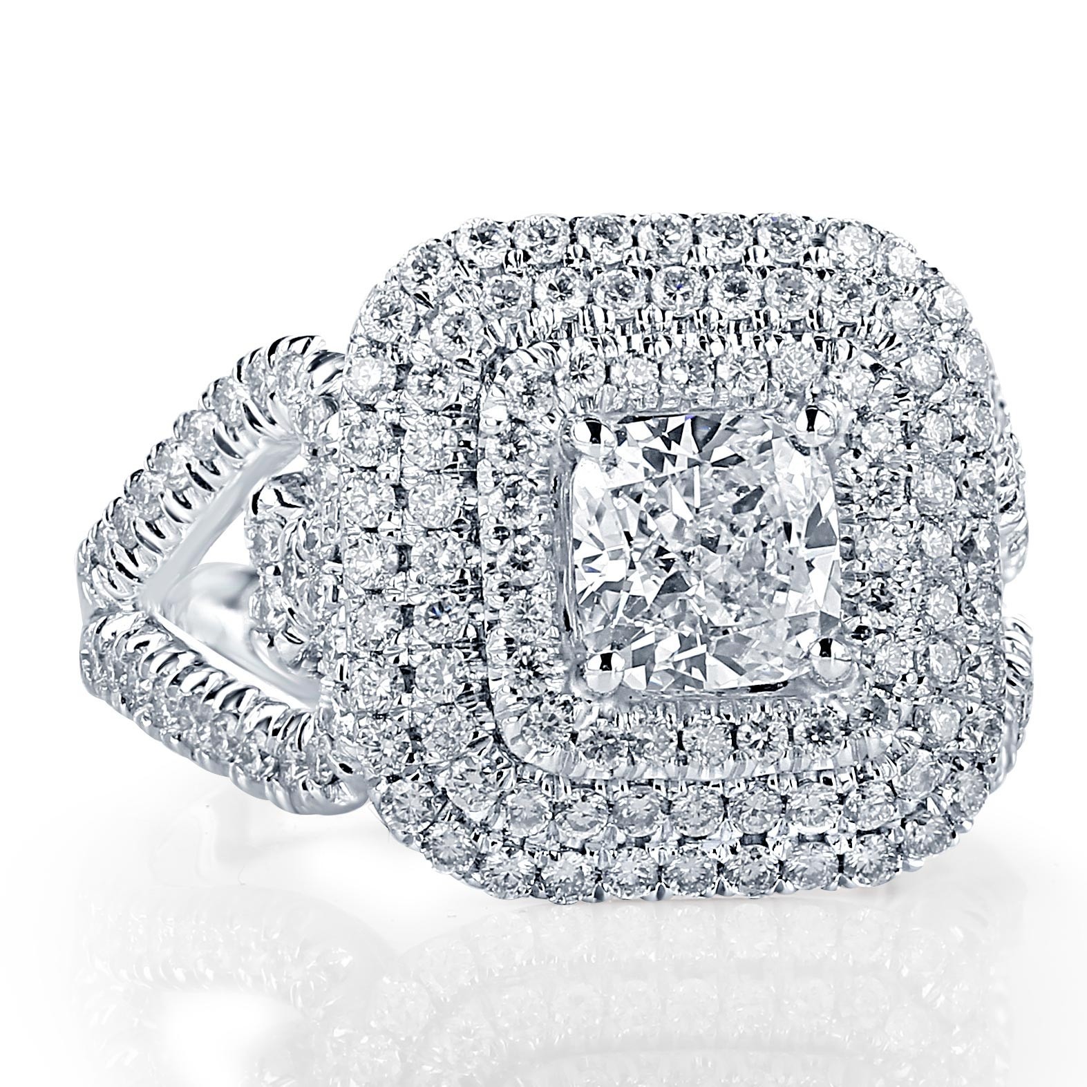 GIA Certified Halo Engagement Ring 2.27 TCW Cushion Cut Diamond 18k White Gold