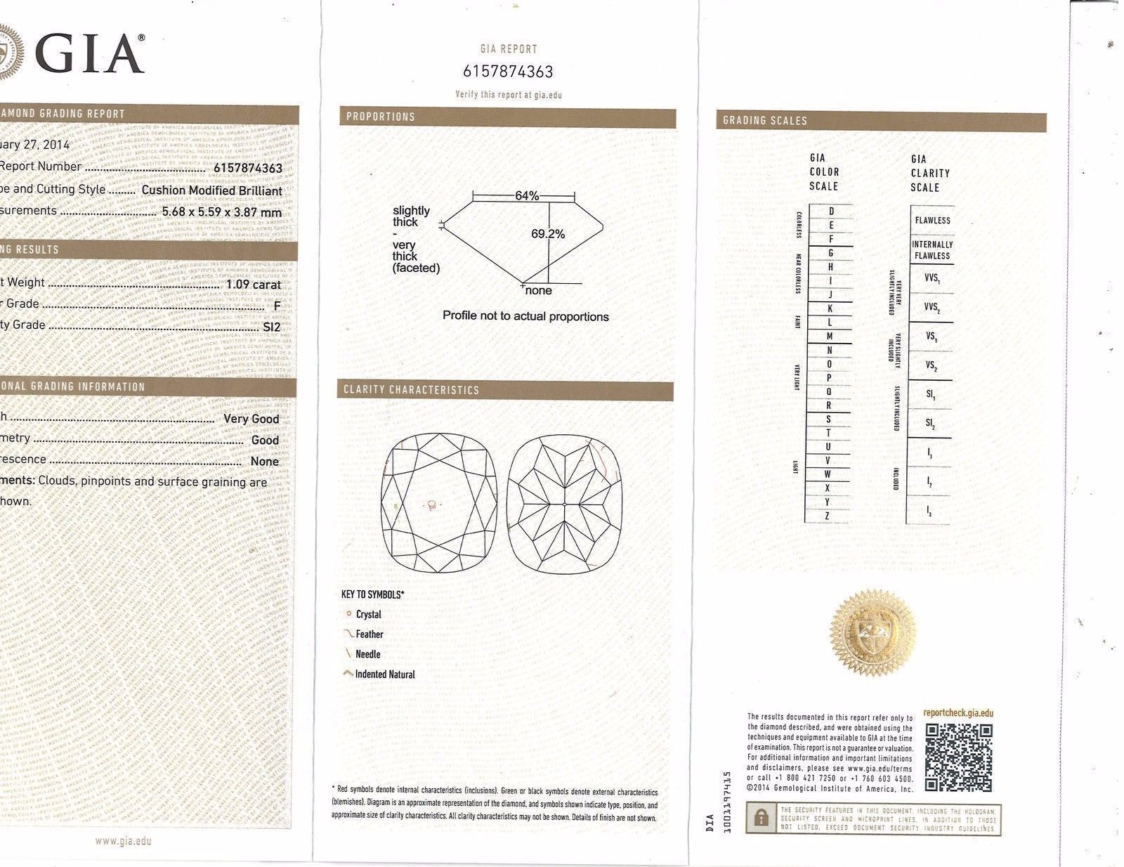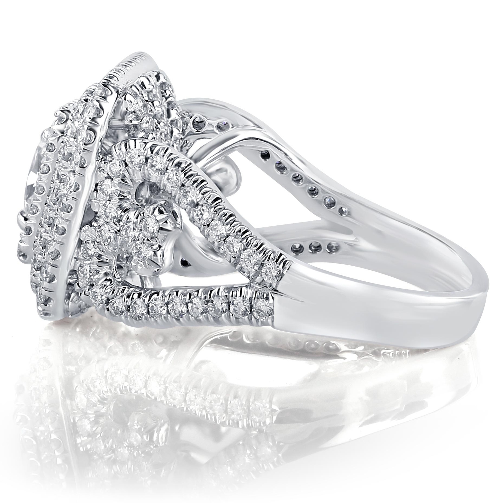 Magnificent diamond ring featuring a stunning 1.09 carat GIA certified cushion cut diamond in a micro pave triple halo setting. The heart shaped split shank with colorless round cut diamonds creates shine and adds extra beauty to the ring, Handcrafted in 18-karat white gold.