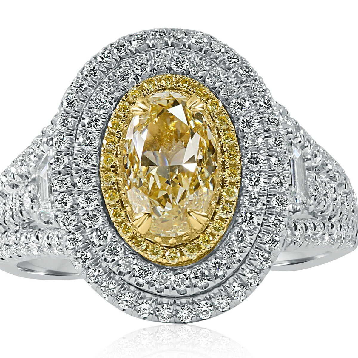 GIA Certified 2.27Ct Oval Fancy Light Yellow Diamond Engagement Ring 18k Gold