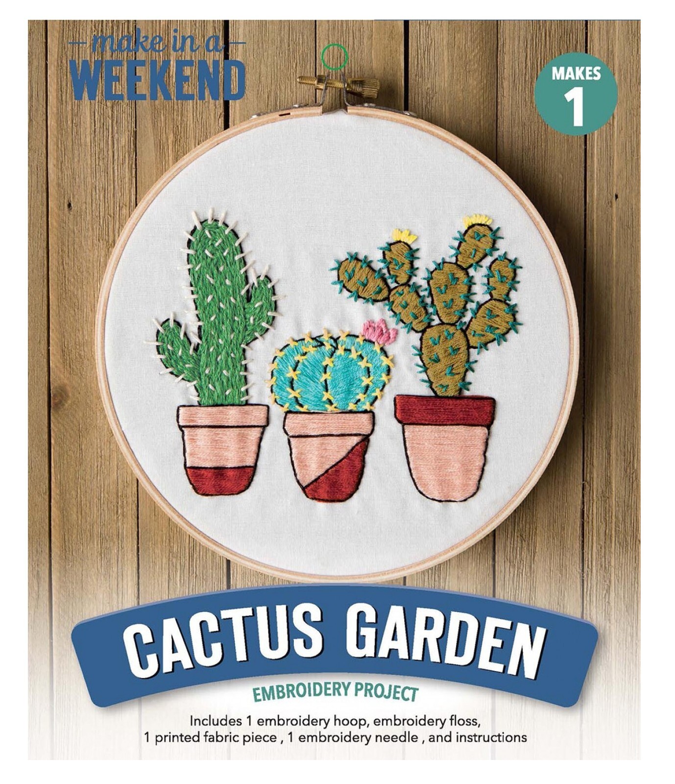 Leisure Arts Cactus Garden 6 Inch Embroidery Kit 49811. Leisure Arts Kit Embroidery Make In A Weekend 6 Inch Cactus Garden. Design features cacti in flower pots. Use the included embroidery hoop to keep the fabric taut while completing the project and then to display your finished project. Kit includes: 1 wooden Embroidery Hoop, 11 Embroidery Floss Colors Totaling 29 Yards, 1 Printed 9 inch x 9 inch Fabric Piece, 1 Needle, and Instructions. CHK-LEA49811