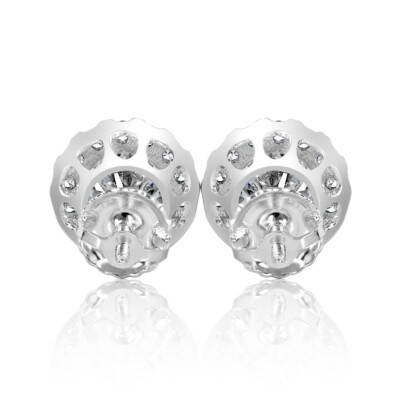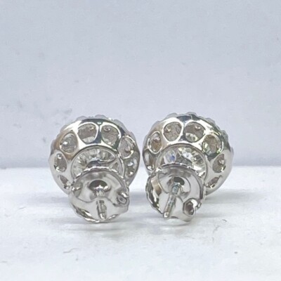 1.31 Quilate Corte Redondo Diamante Tuerca Mano Pendientes 14k Oro Blanco