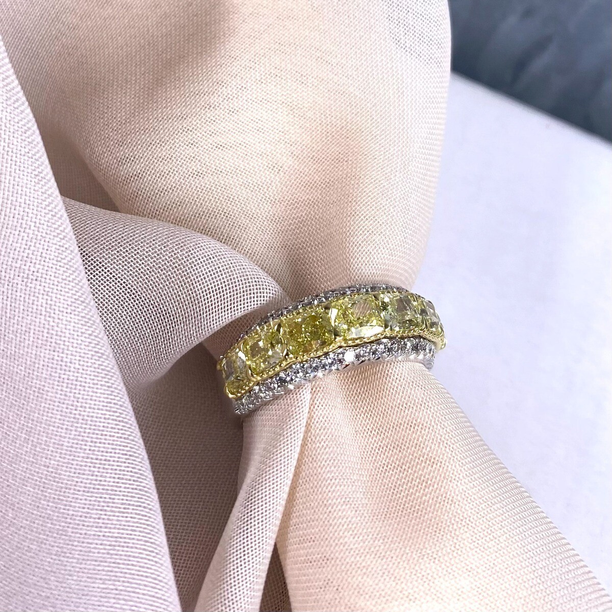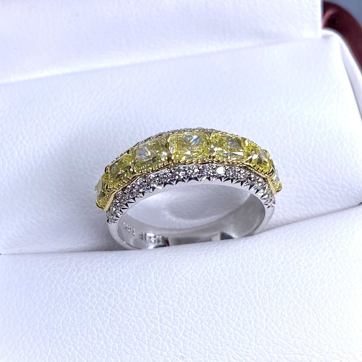Eternidad 4.02CT Natural Elegante Luz Amarillo Almohadon Diamante 14k Alianza