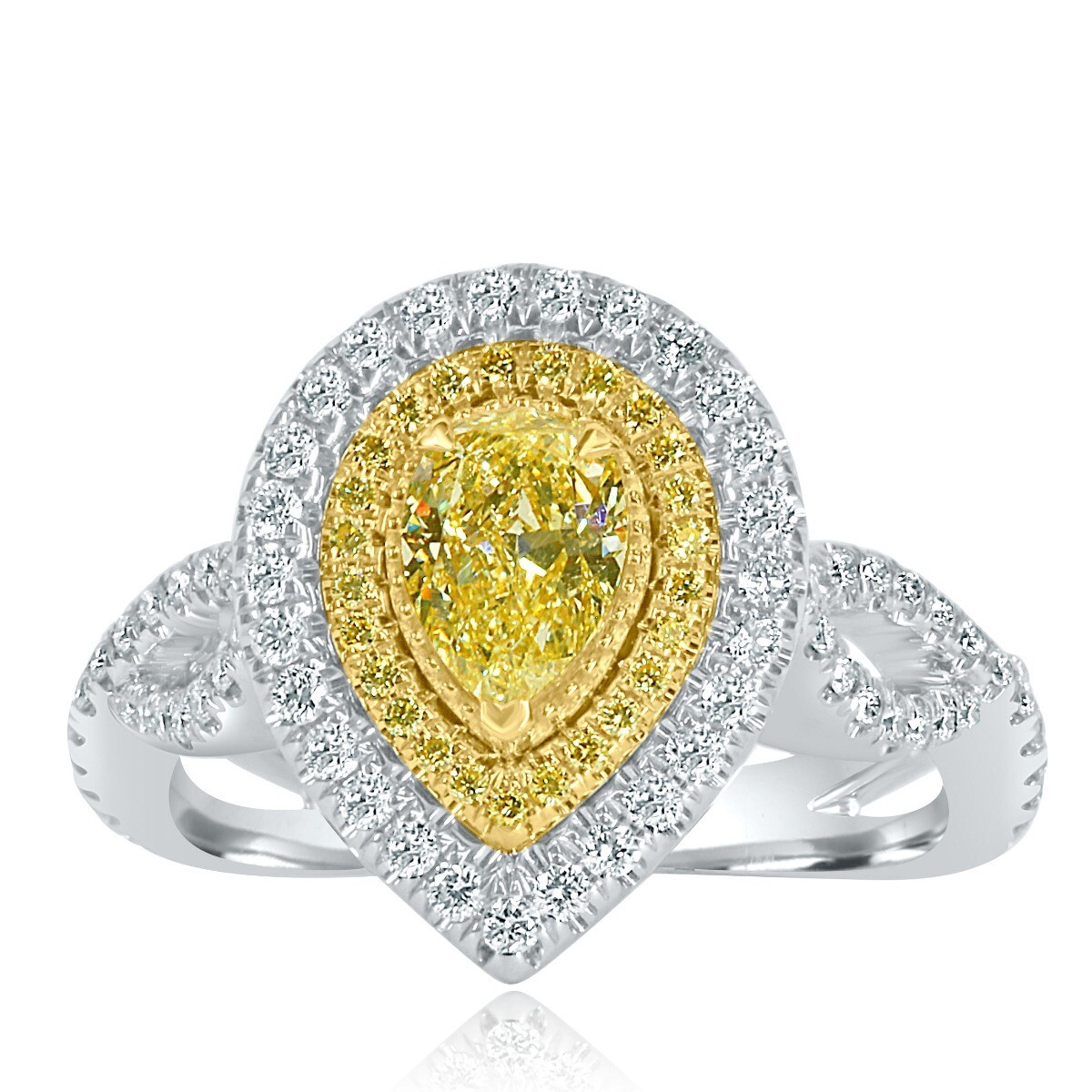 GIA 1.57 Ct Pear Light Yellow Diamond Engagement Engagement Engage Gold Gold