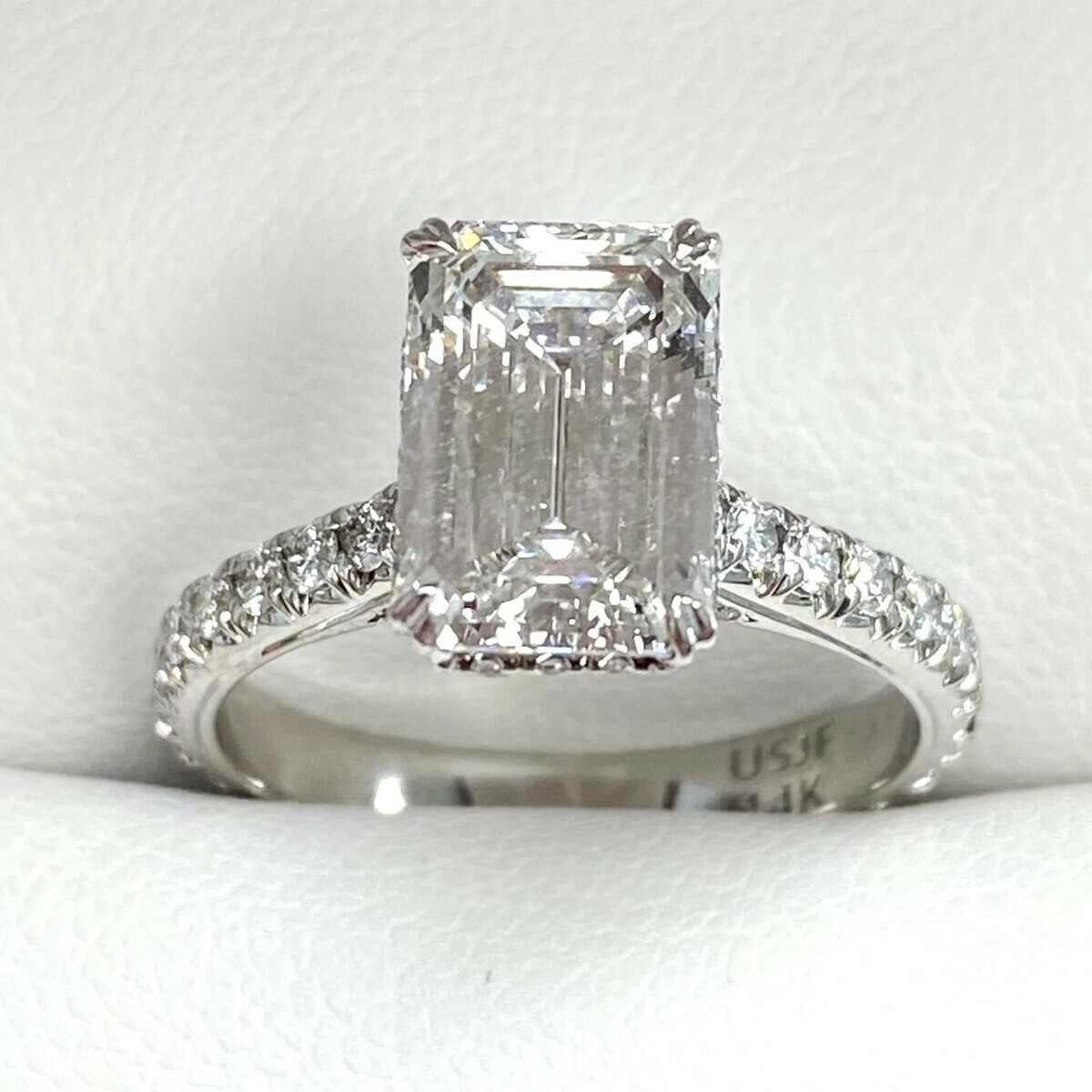 Igi 2Ct D-VS1 Emeraude Coupe Labo Grown Fiancailles Diamant Bague Eternite 14k