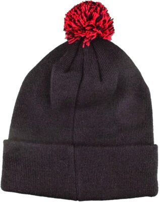 Deadline Black Embroidered Sports Logo Folded Cuff Pom Beanie Winter Ski Hat NEW