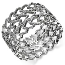 INC International Concepts SilverTone Crystal Pave Heart Wide Stretch Bracelet