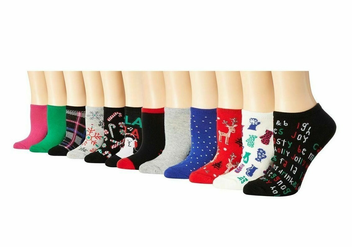 This is for a brand new in box HUE Women's Days of Christmas No Show Liner Sock Gift Box, 12 Pairs Assorted
