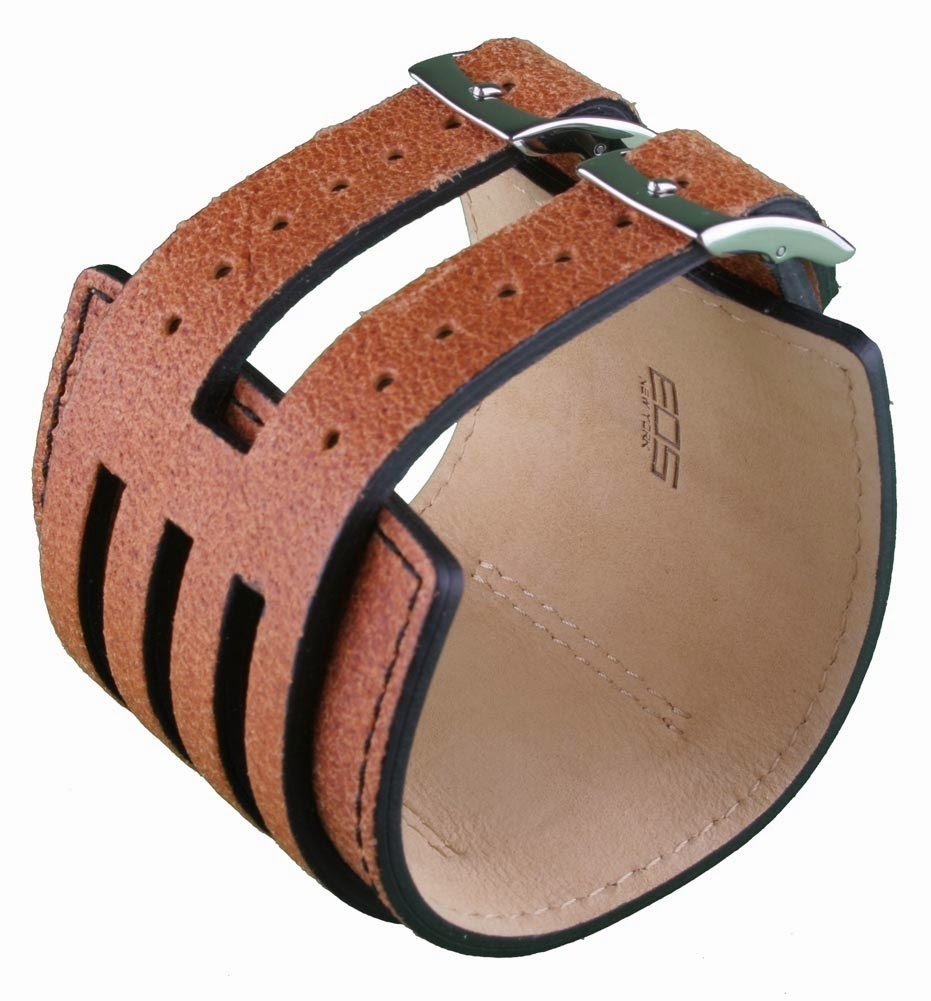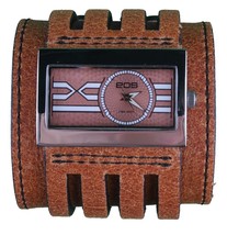 Este reloj Metro de EOS de edicion extremadamente limitada presenta un diseño de manguito ancho y angustiado vintage con movimiento de cuarzo japonesero