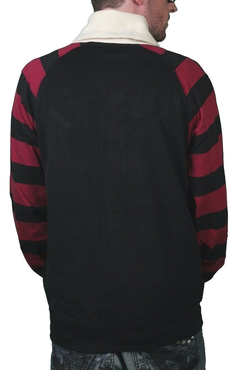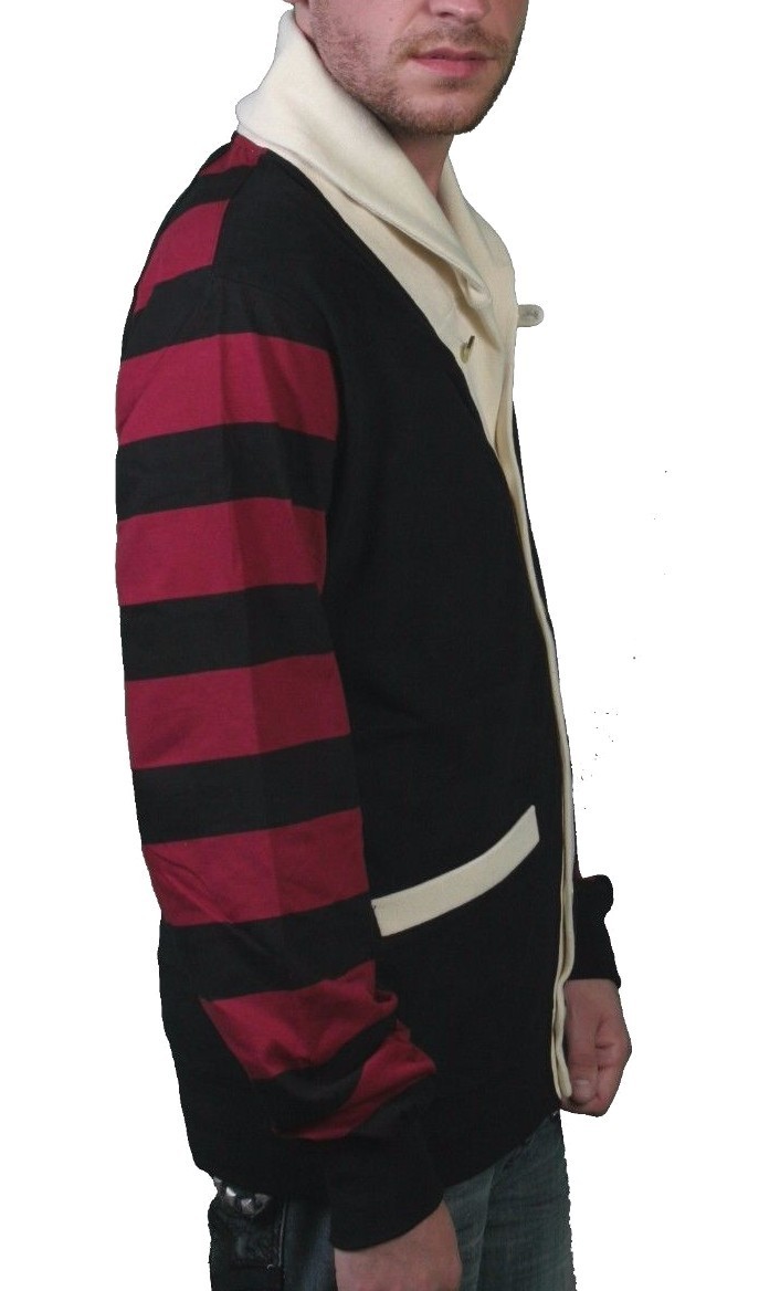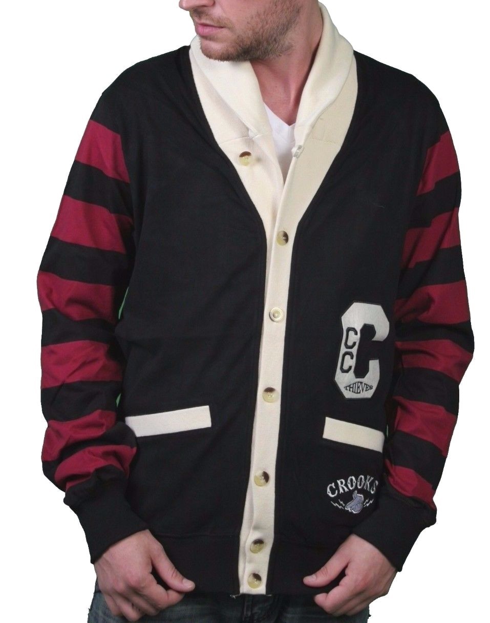 Esto es para una nueva marca con etiquetas Crooks Castles Knit Air Guns Collar de chal Black/Scarlet Cardigan Sweater Tamaño pequeño 80% algodon 20% poliester