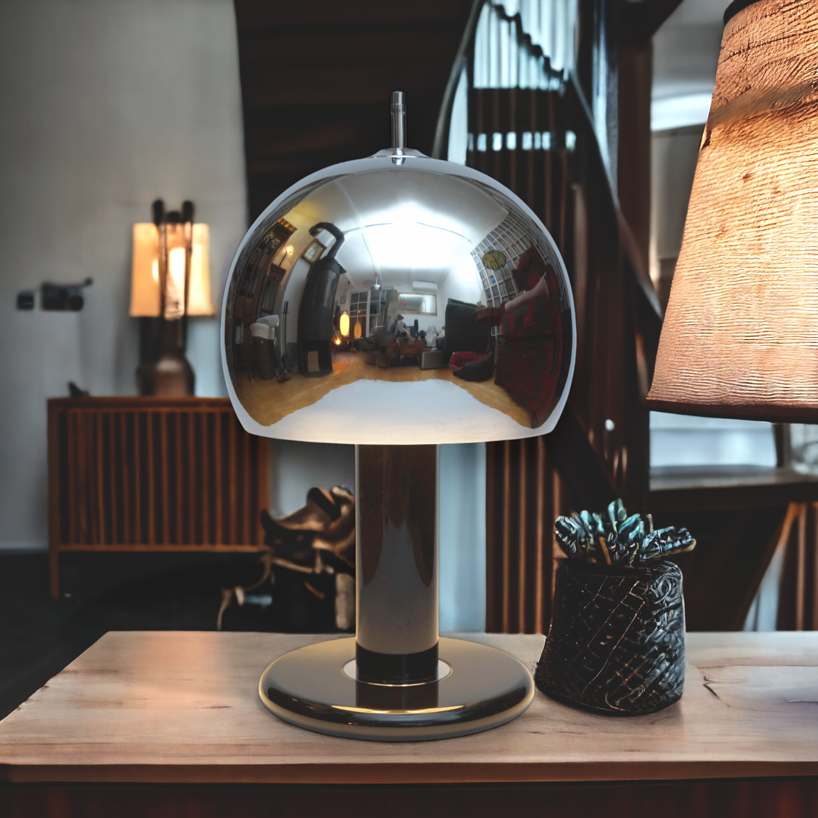 Italien Design Table " Silver Sphere " Late 70s Design Lampe Space Âge